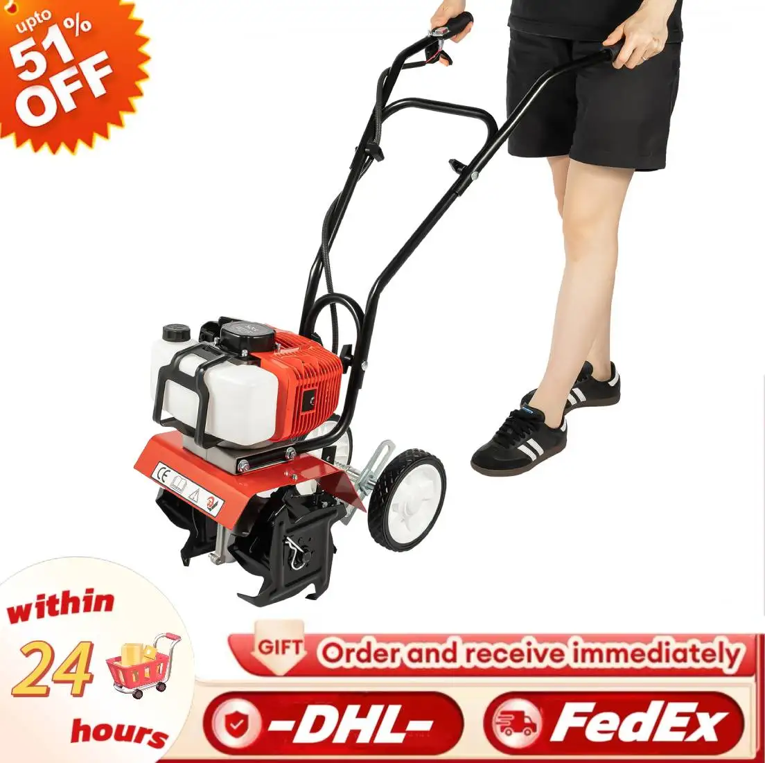 Powerful Motor: The 1.9KW motor and 6500-7000rpm make it run efficiently, and it can finish the tilling work quickly, saving your time and energy.