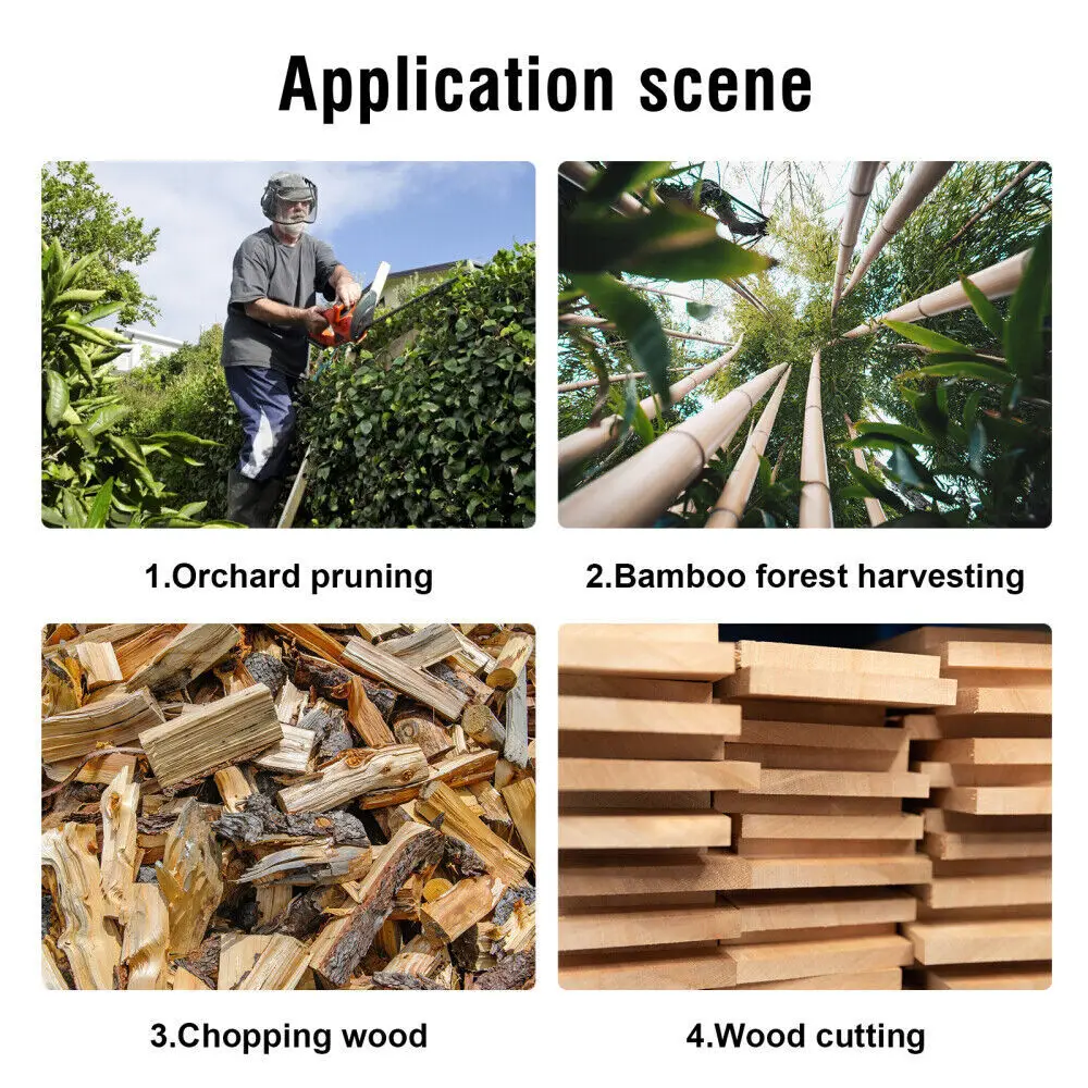 Diese Stangensäge ist aus hochwertigem Manganstahl Sägekette, Legierung Kohlenstoffstahl Klinge, und ABS für eine lange Lebensdauer gemacht. Die Sicherheitsverriegelung bietet Ihnen ein höheres Maß an Sicherheit. Das kabellose Design beseitigt die Schwierigkeit der Buchse Verdrahtung und die Einschränkung der Arbeit durch verwickelte Drähte verursacht. Es wird Ihr leistungsstarker Arbeitsassistent sein!