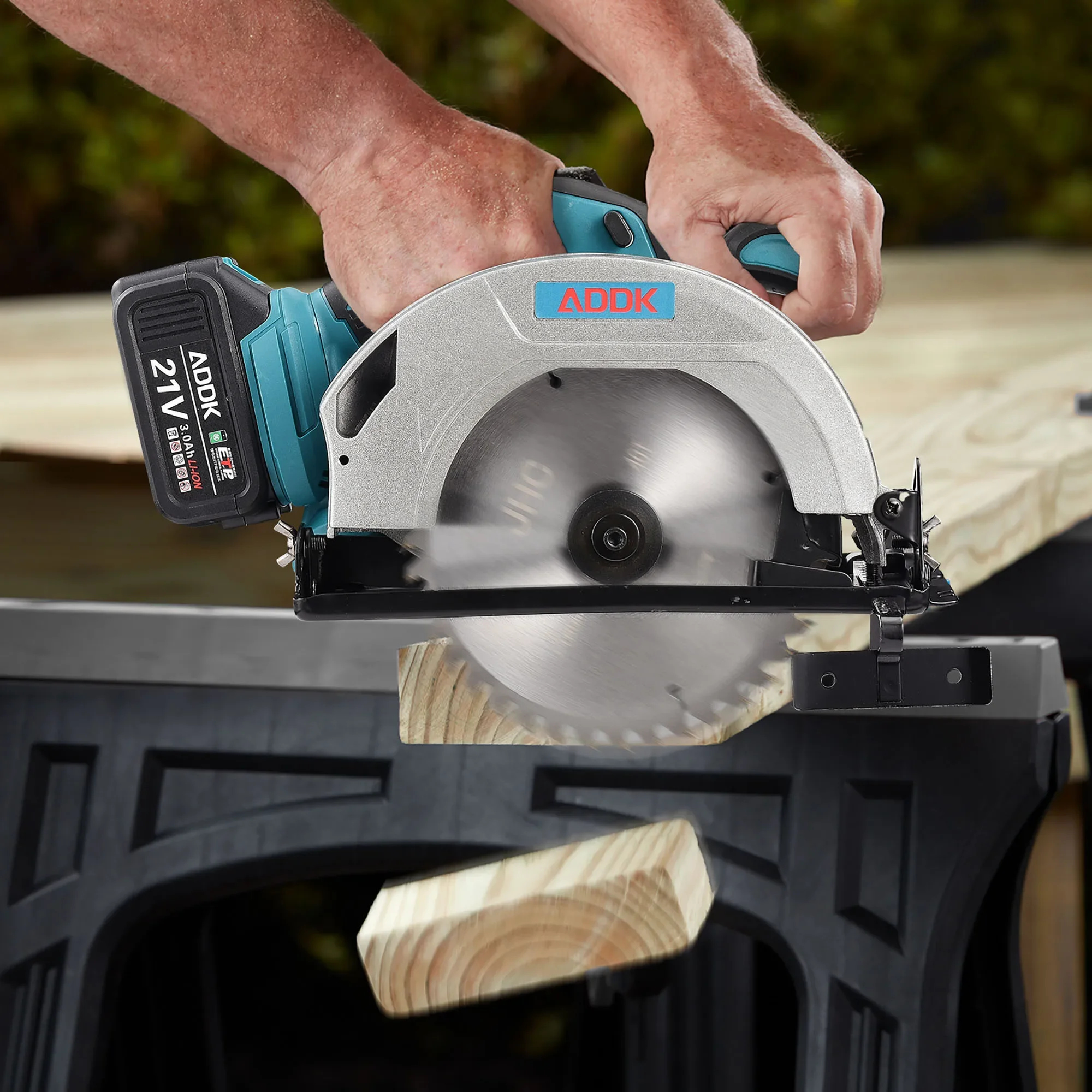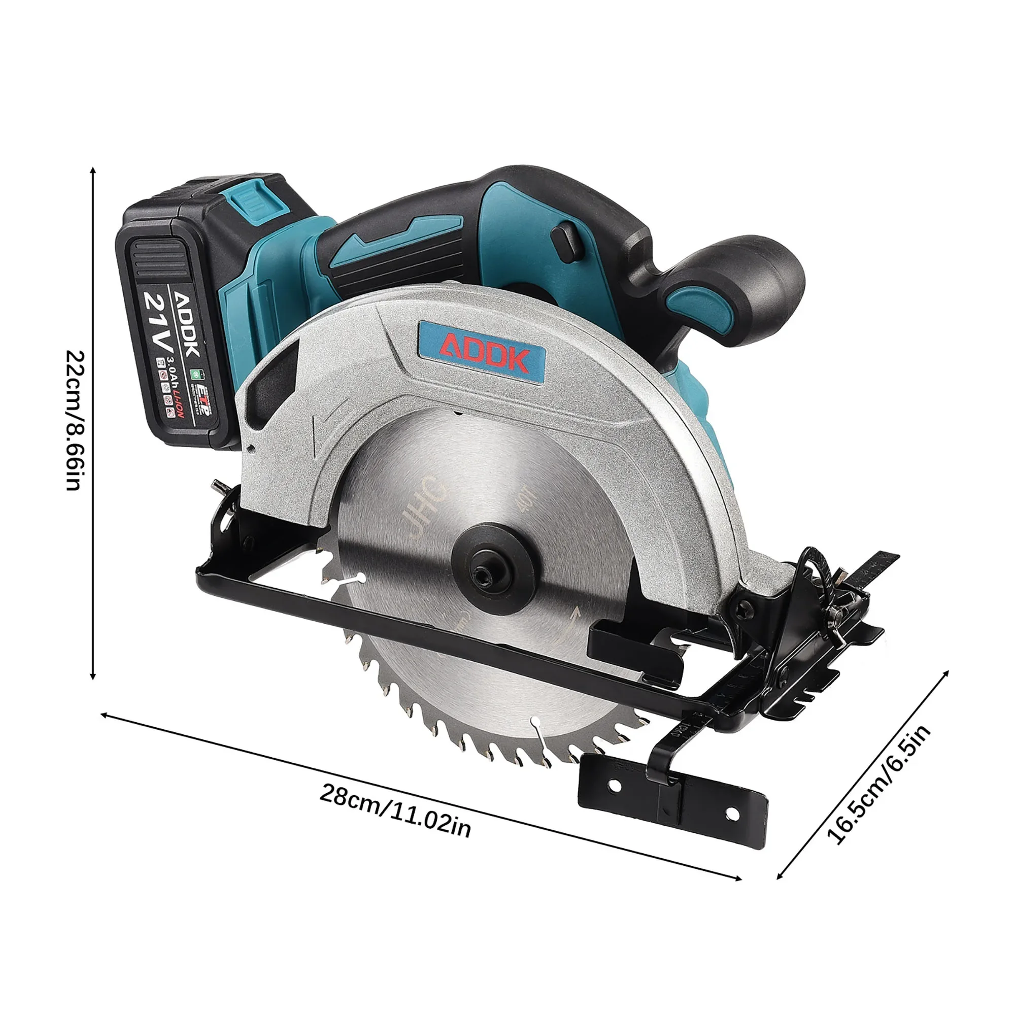 Cordless Portable Circular Saw 20V with 1 3000mAh Battery, 40T Saw Blade Diameter 185mm, Cutting Max. Tilt 45° and Depth 56mm