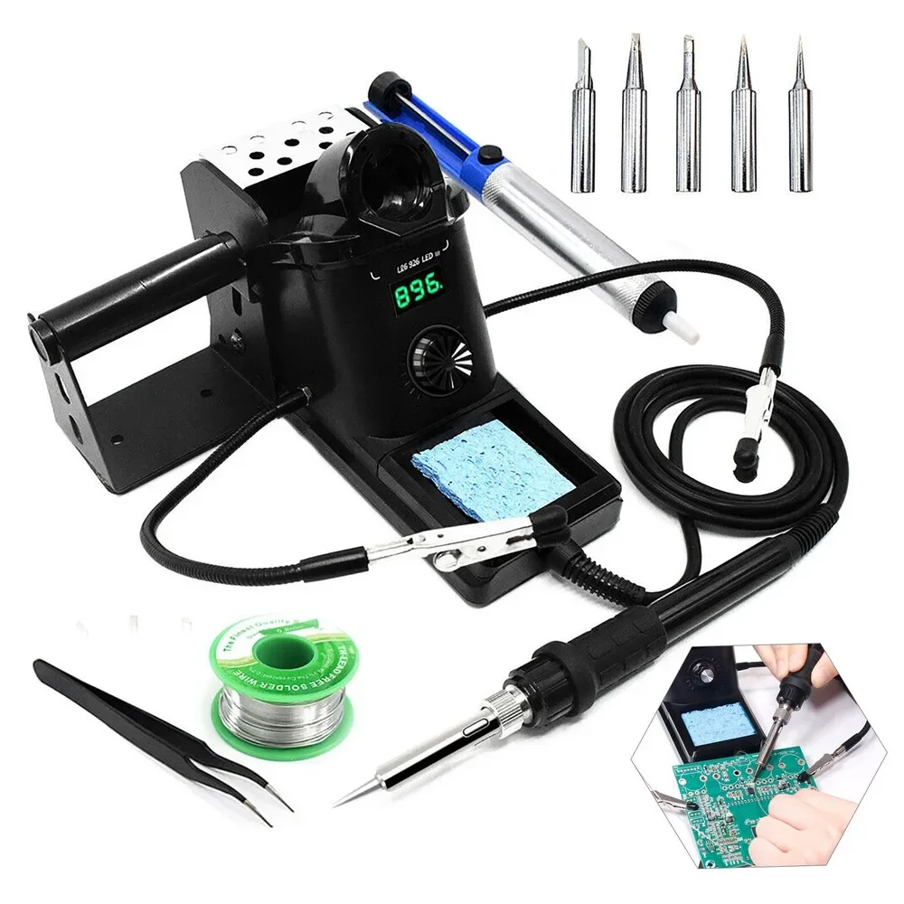 60W Digital Soldering Station CE FCC Certified Fast Heating PID Control 5 Tips Kit for PCB SMD Electronics Repair DIY Hobbyist