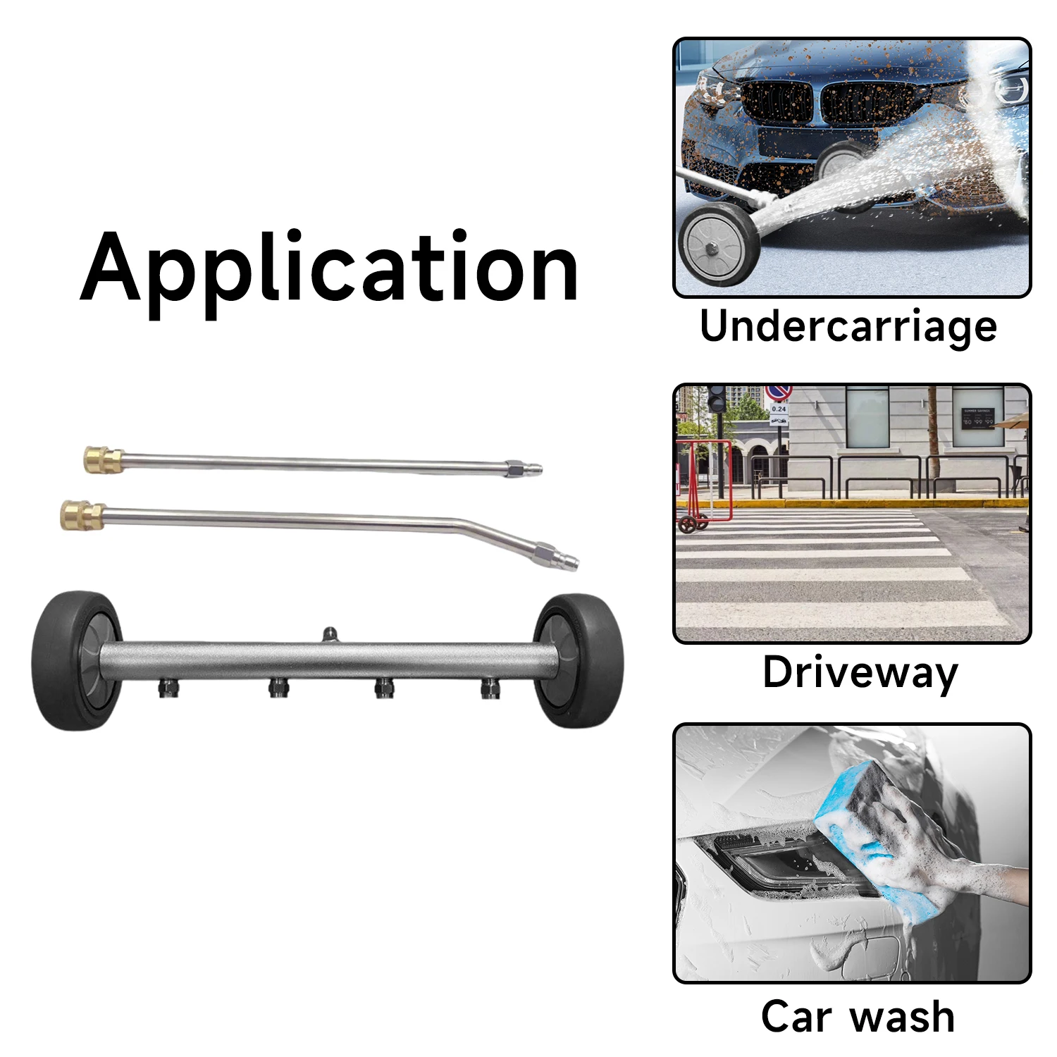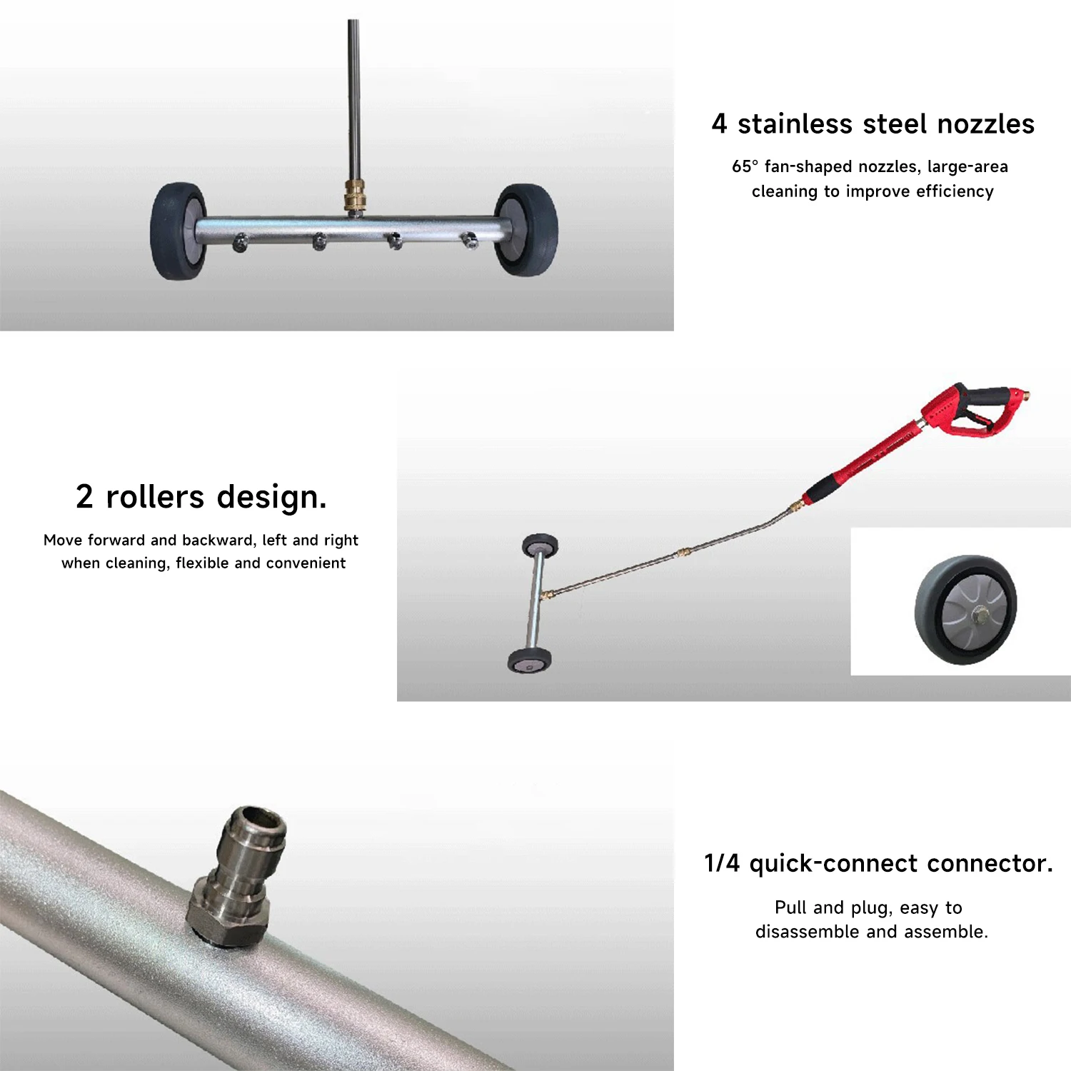 Versatile Cleaning Tool**: The Car Undercarriage Cleaner features dual functionality; one side is designed for undercarriage cleaning while the other serves as a Surface Cleaner for Pressure Washer, making it the perfect addition to your car maintenance toolkit.