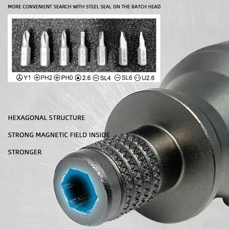 Material: Aluminum alloy blade S2 tool steel material screwdriver head