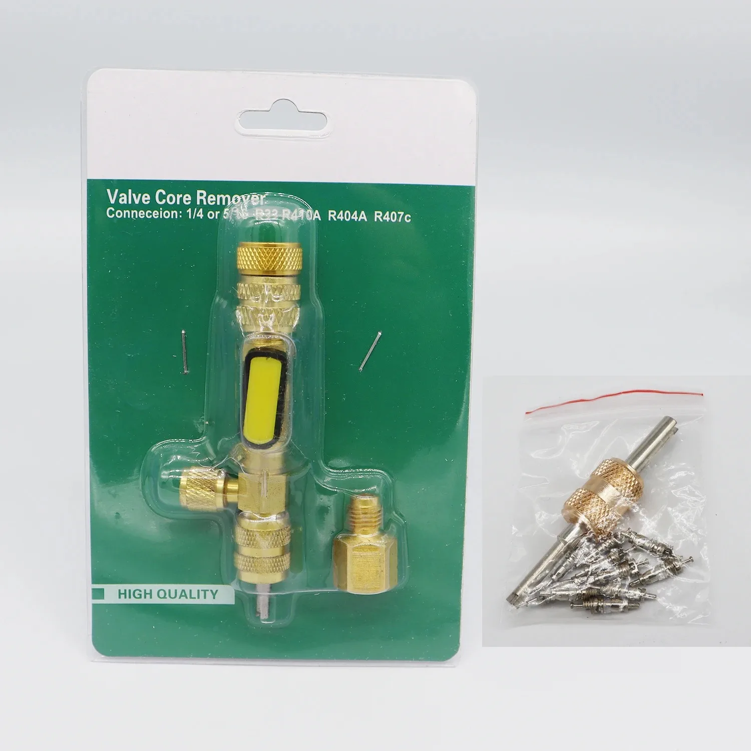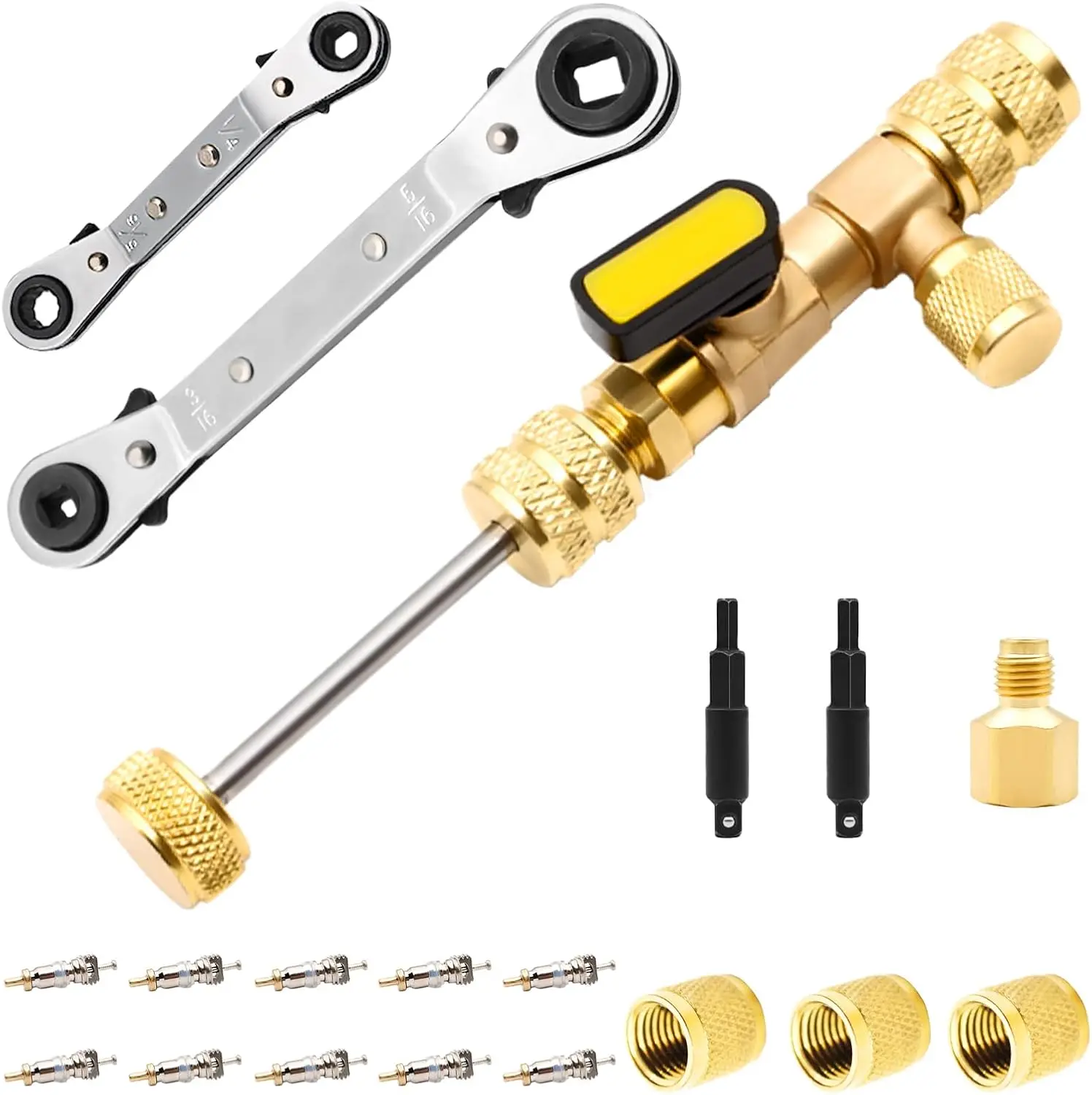 Valve Core Remover Installer Kitwith Dual Size 1/4 and 5/16 Ports for R12,R22,R32,R404,R407,R410, R404 A/C Air Condition System