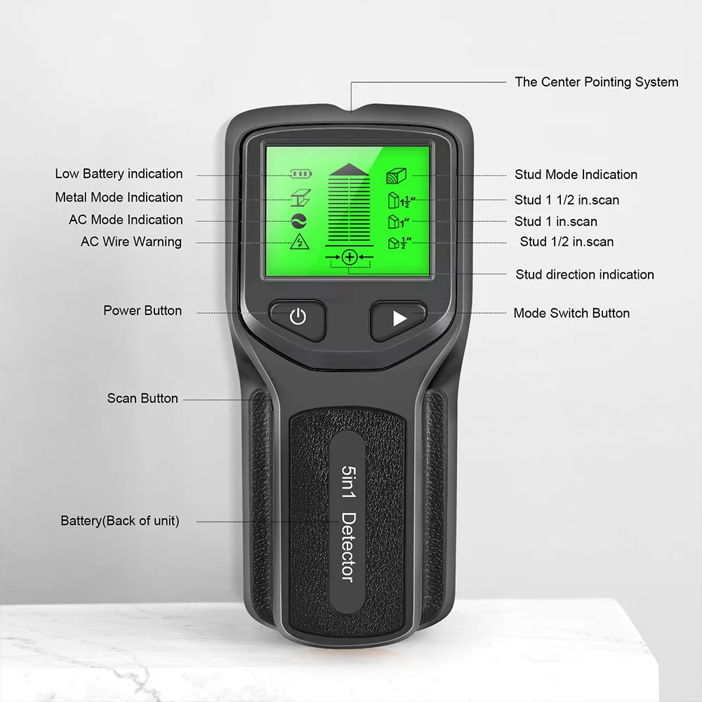 • 5-in-1 Functionality :This device combines multiple functions into one, including AC voltage live wire detection, metal wire detection, and wood stud finding, making it a versatile tool for home security.