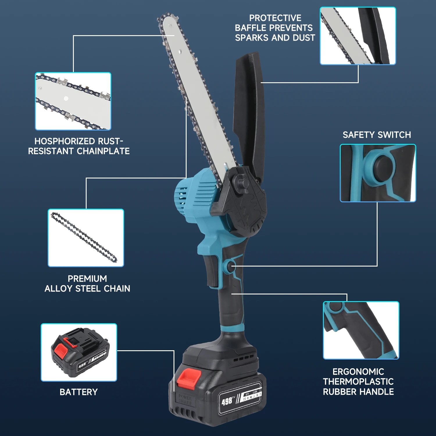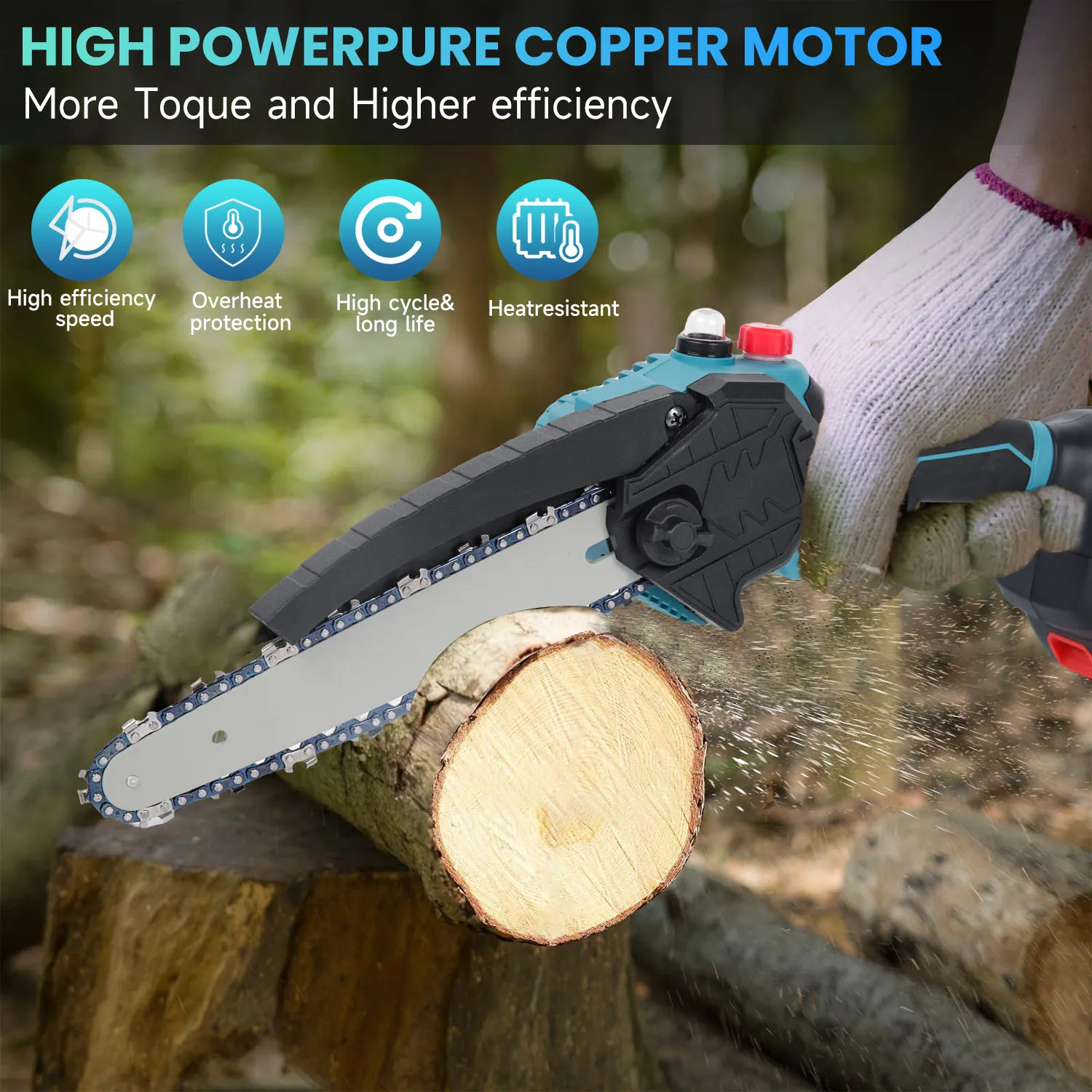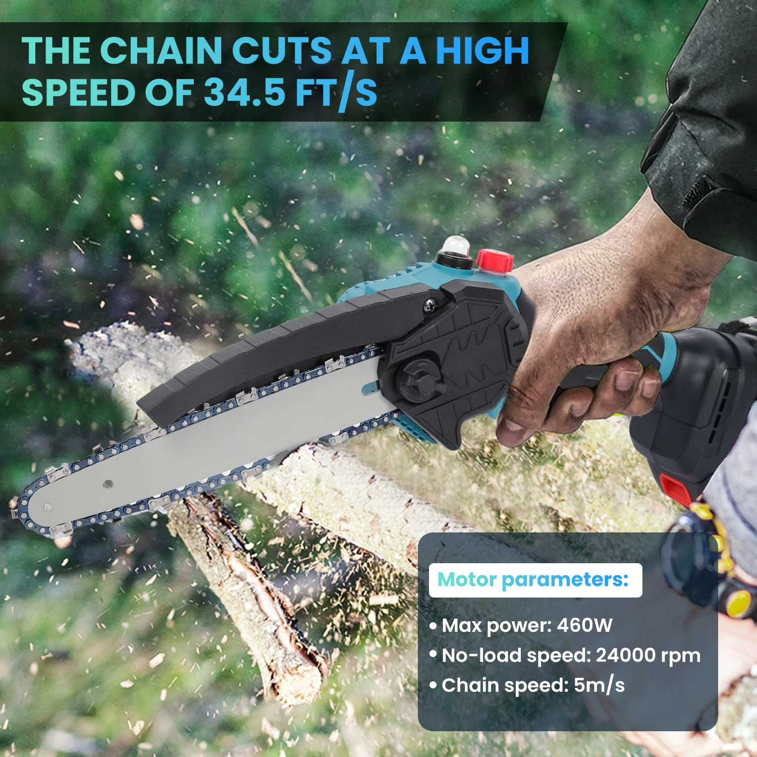 The high speed of 24,000 rpm and the chain speed of 5M/S make cutting fast and smooth, making it easy to handle both pruning branches and processing wooden boards.