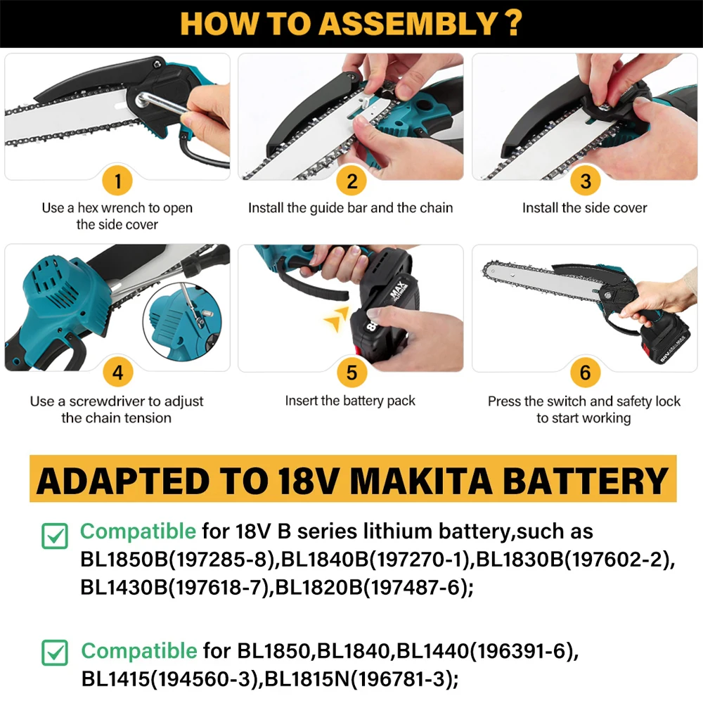 8inch Brushless Electric Chain Saw Cordless Portable Tree Branch Logging Chainsaw Woodworking Garden Tool For Makita 18V Battery