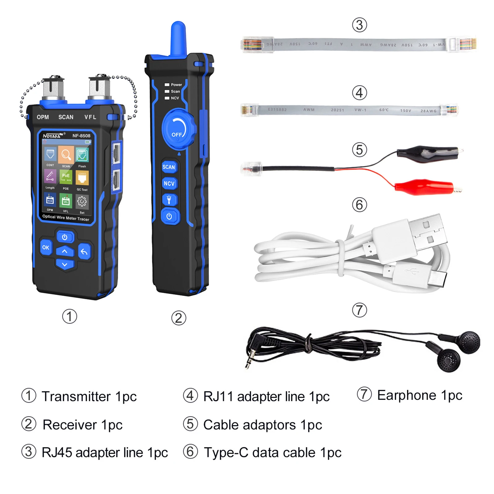 NOYAFA NF-8508 Network Cable Tester LCD Digital Rechargeable Network Line Finder Wire Tracker PoE Checker Optical Wire Meter