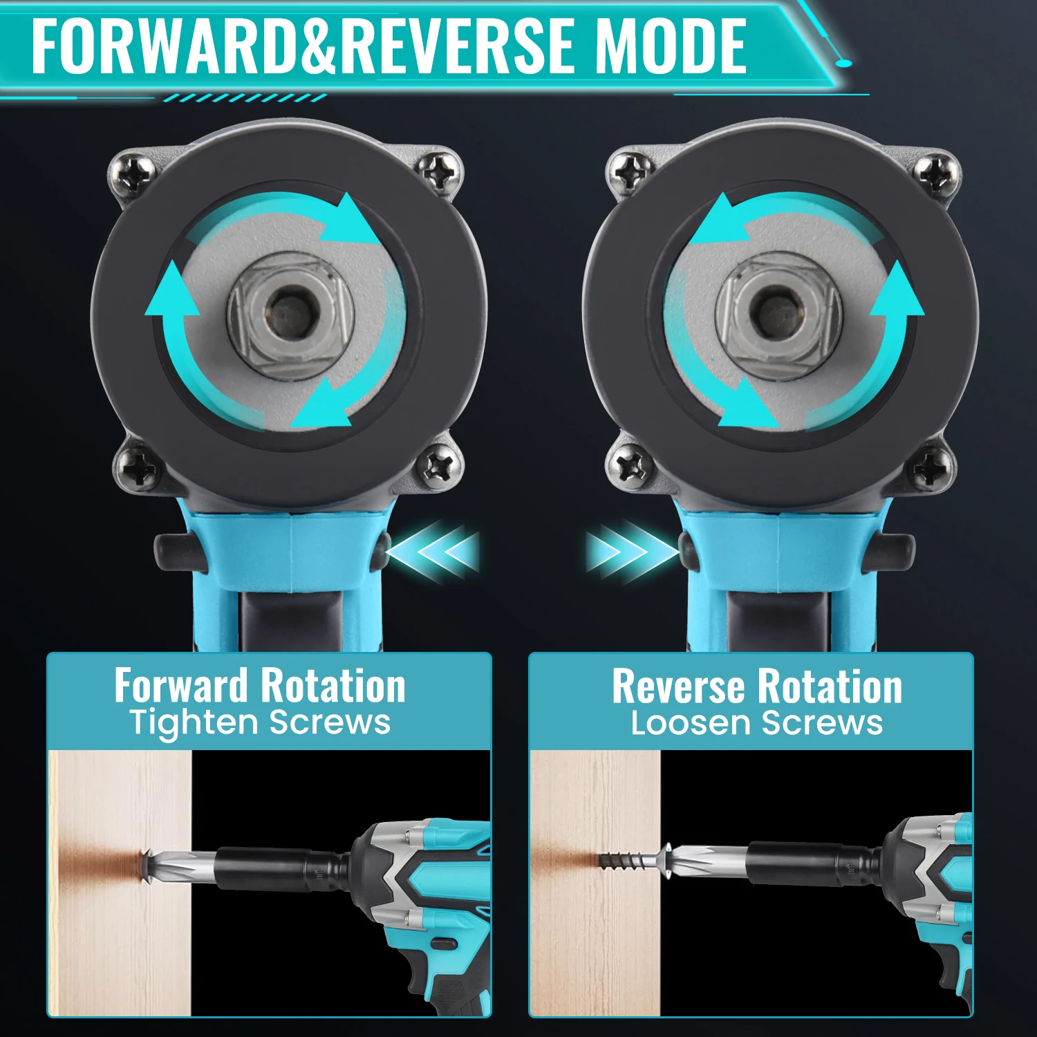 Multi-gear adjustment, precise control: 3 gears forward + 2 gears reverse, adapt to different screw/bolt working conditions, avoid over-tightening or damage to the workpiece.