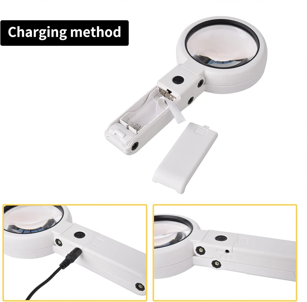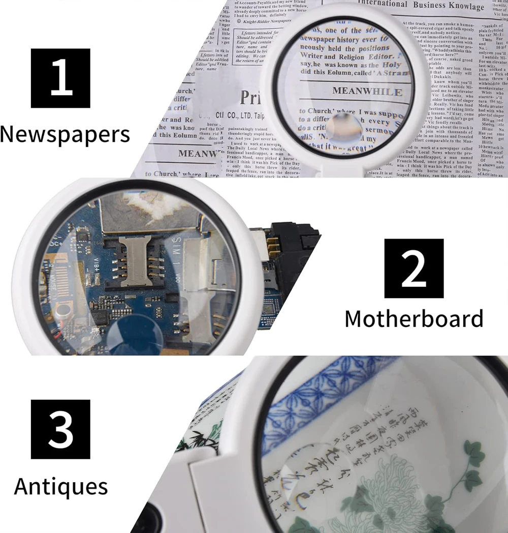 【Easy to Use】This is a great little magnifying loupe! The magnifier can be used either handheld or freestanding. This little device is lightweight, easy to carry, and can be used with batteries or a USB cable, which is definitely a big plus.
