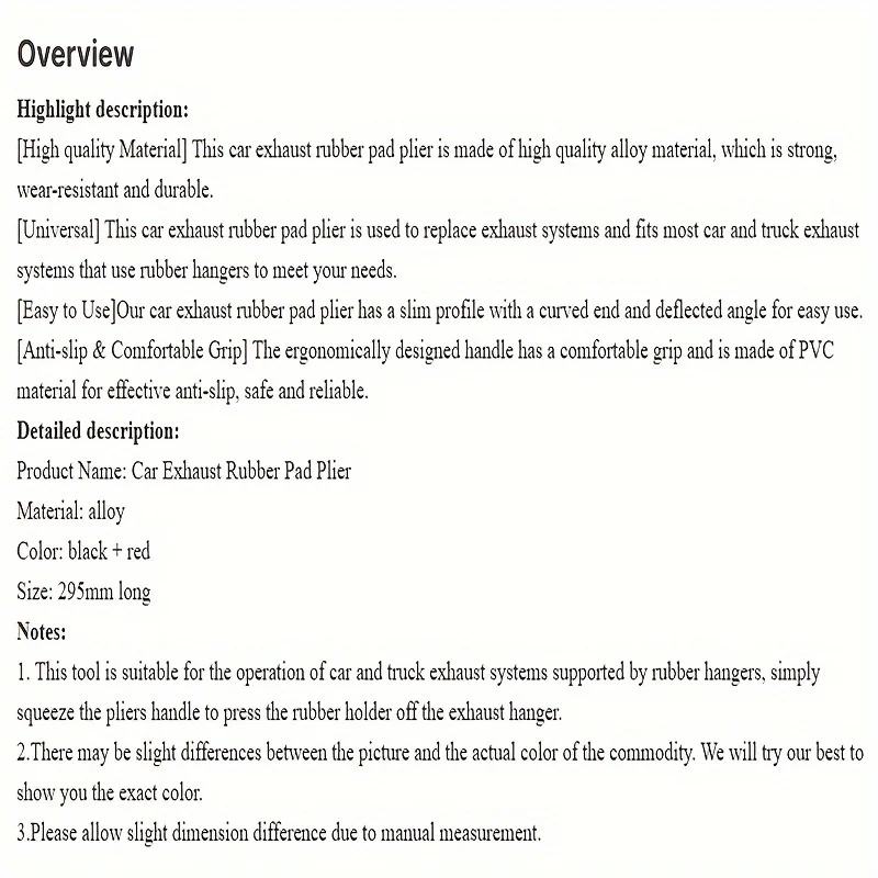 Universal Car Exhaust Rubber Pad Pliers Exhaust Pipe Gasket Removal Plier Exhaust Hanger Removal Puller Anti-Slip Handle Tools
