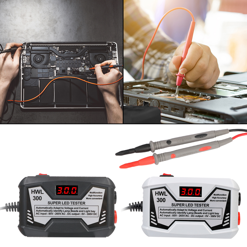 Removable free screen LED backlight LCD TV maintenance and detection Bead lamp with light strip tester 0-300V High brightness Removable free screen version: input voltage: 85-265V, output voltage: 0-300V, power 18W. Automatic detection of output voltage and current. It can test LED backlight and lamp beads of any size. High brightness, you can judge the backlight without removing the screen.