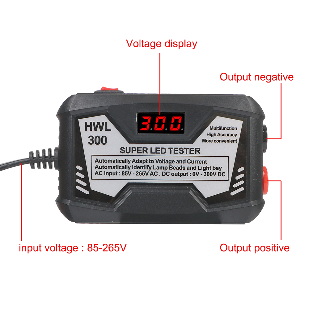 Digital display of real-time voltage output, with adjustable voltage, the voltage value can be self calibrated. The digital meter adopts green light-emitting tube. 00 indicates short circuit and 300V indicates open circuit. The display voltage of each group of LED light bars of the same LCD TV shall be the same.