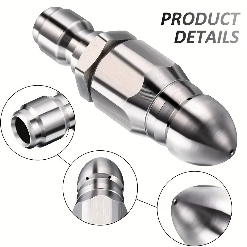 1 piece of stainless steel high-pressure drainage nozzle - quick connect 1/4 inch pipe cleaning nozzle for sewer dredging