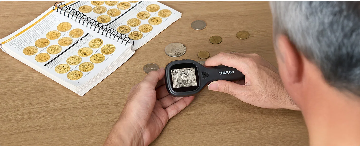 • 20X Digital Magnification with True Detail: Reveal mint marks, strike errors, and surface details with this handheld digital coin microscope, offering up to 20X zoom(including 4x digital magnification)—ideal for grading coins and identifying rare varieties