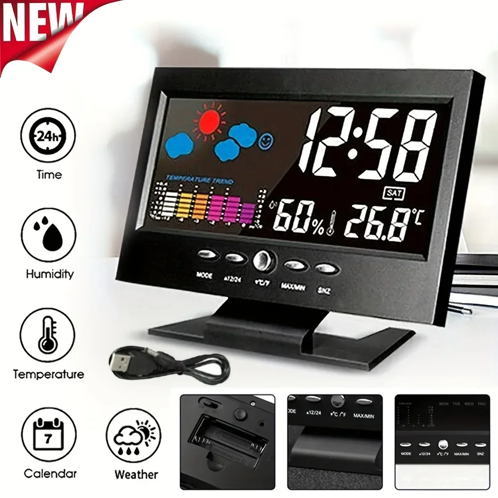 Weather Station Digital Temperature Humidity Meter Clock Thermometer Hygrometer Calendar Temperature Trend Alarm Comfort Level