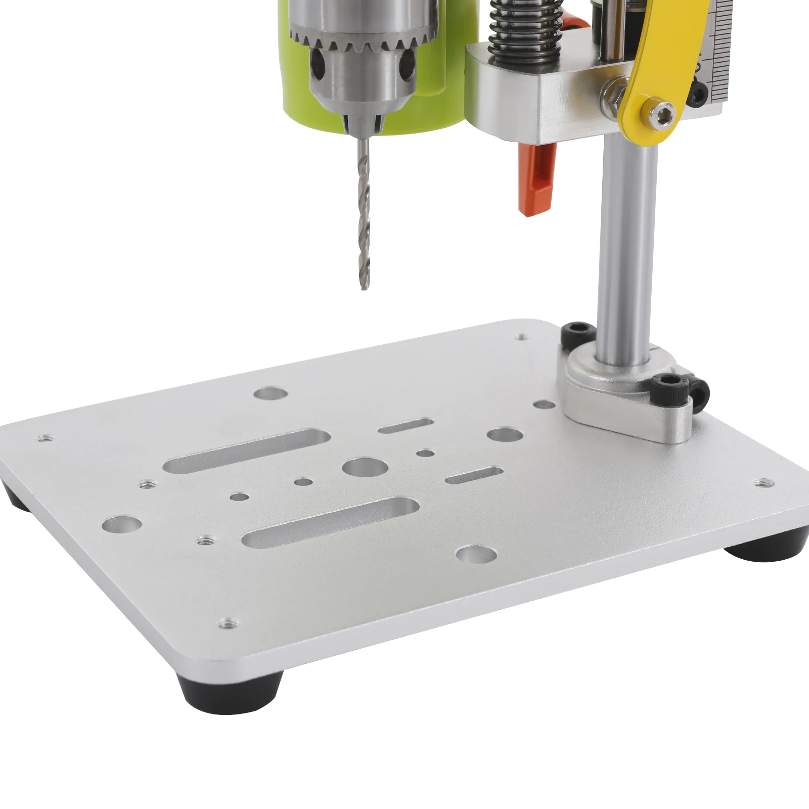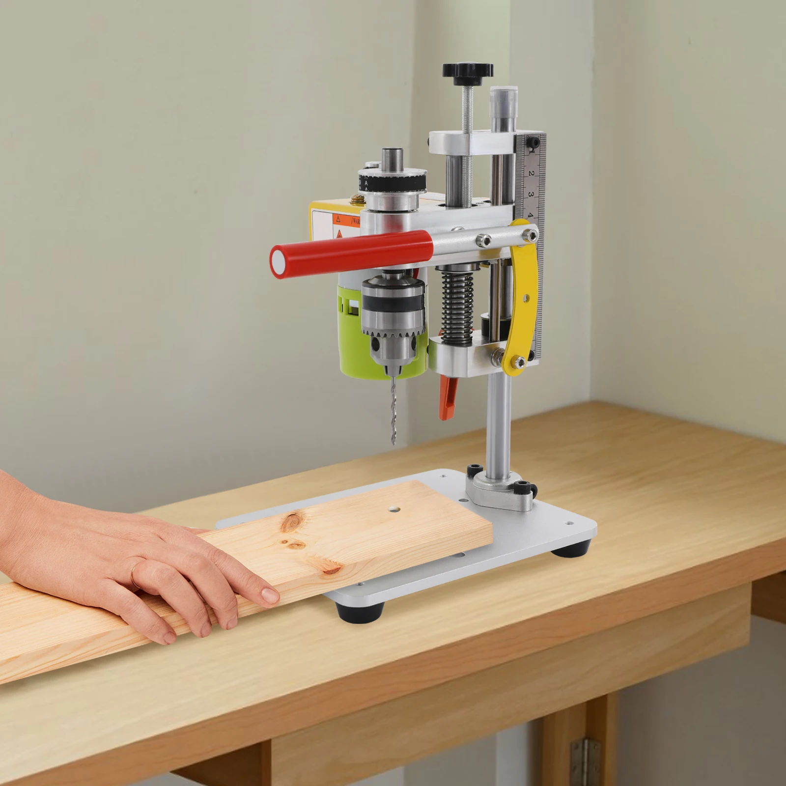 Equipped with a powerful motor, this mini drill workstation is the ideal companion for repairing small objects and making creative crafts. The multi-hole table, practical handles, and precision downward scales make it easy and precise to hold workpieces and manipulate the depth of drilling, making every creation, whether it's a small piece of jewelry or a DIY craft, fun and fulfilling.