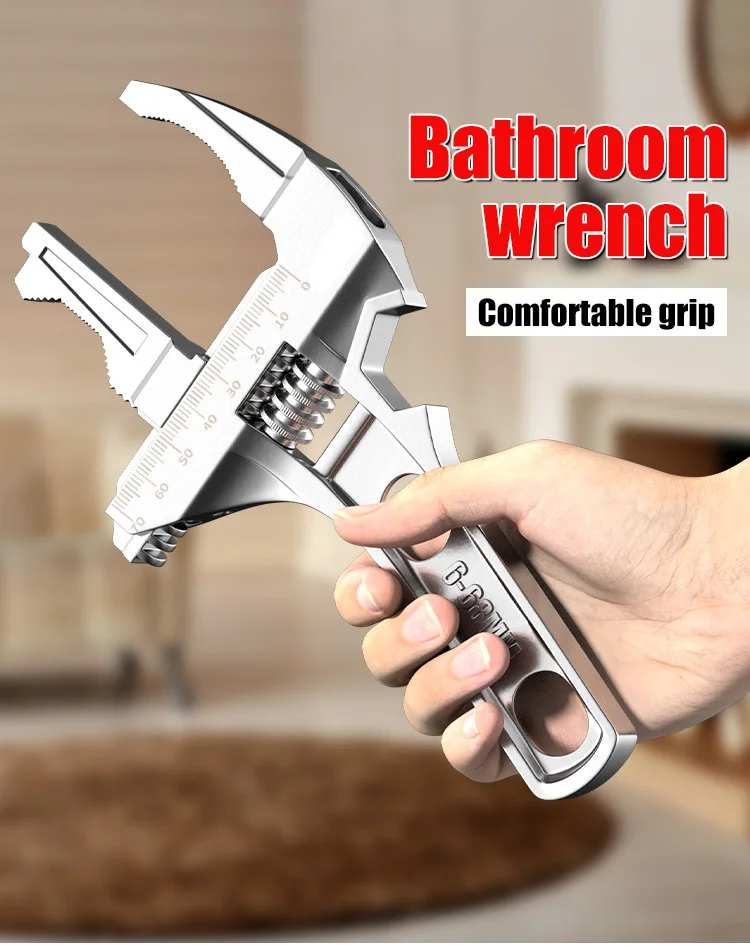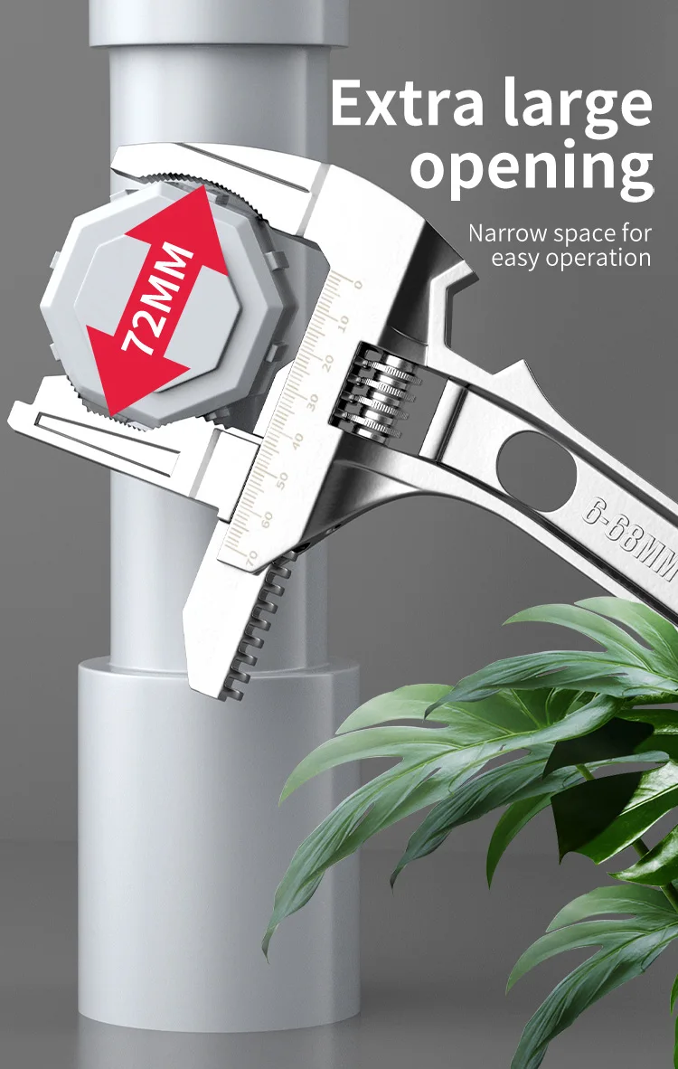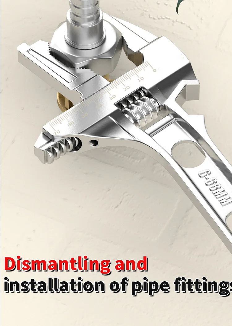 Silver Multi-Function Plumbing Wrench - Adjustable Jaw for Faucets, Pipes & Nuts (10-Inch Chrome Finish)