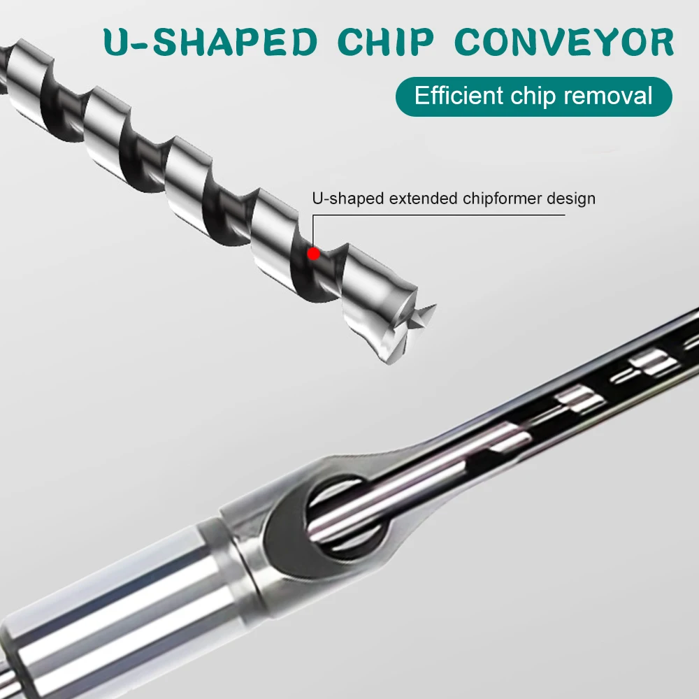 3. The design of the chip removal trough: The long chip removal trough design facilitates the discharge of wood chips and enhances the drilling efficiency