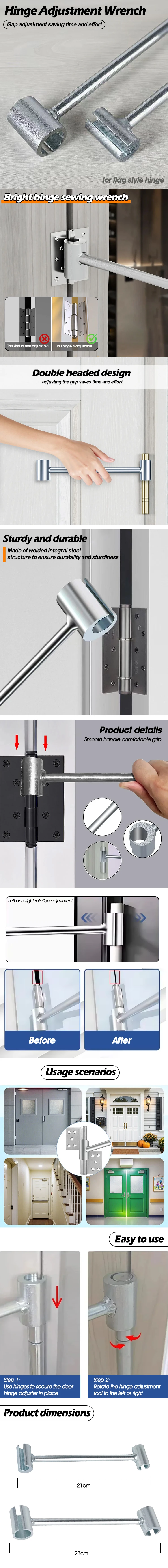 This product is a specialised adjustment tool designed exclusively for flag-style hinges. Featuring an innovative dual-head design, it significantly simplifies the process of adjusting gaps in door and window hinges, enabling users to complete adjustments swiftly and precisely. This effectively saves time and effort, making it an ideal tool for home maintenance, renovation, and installation professionals.
