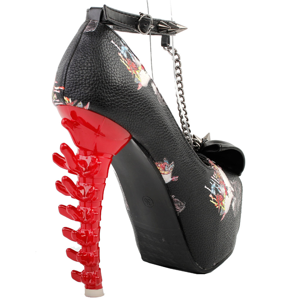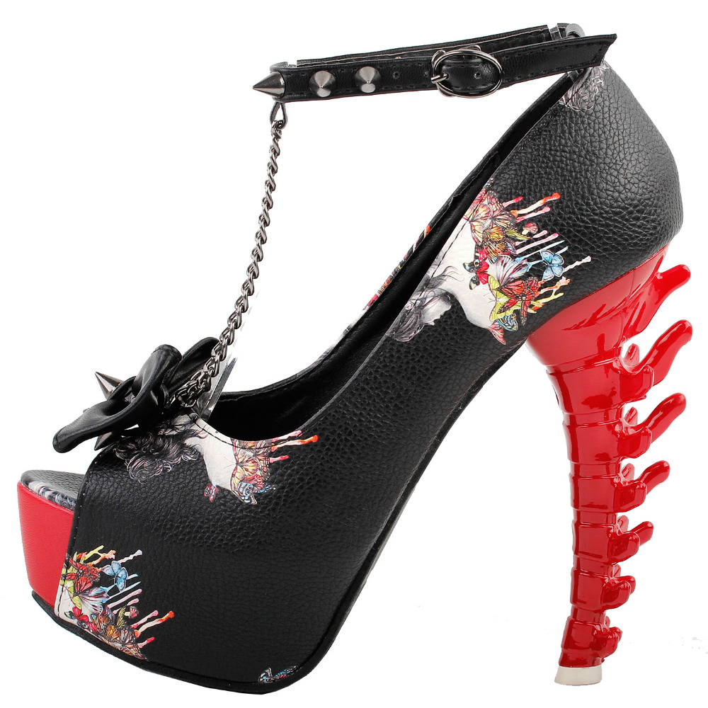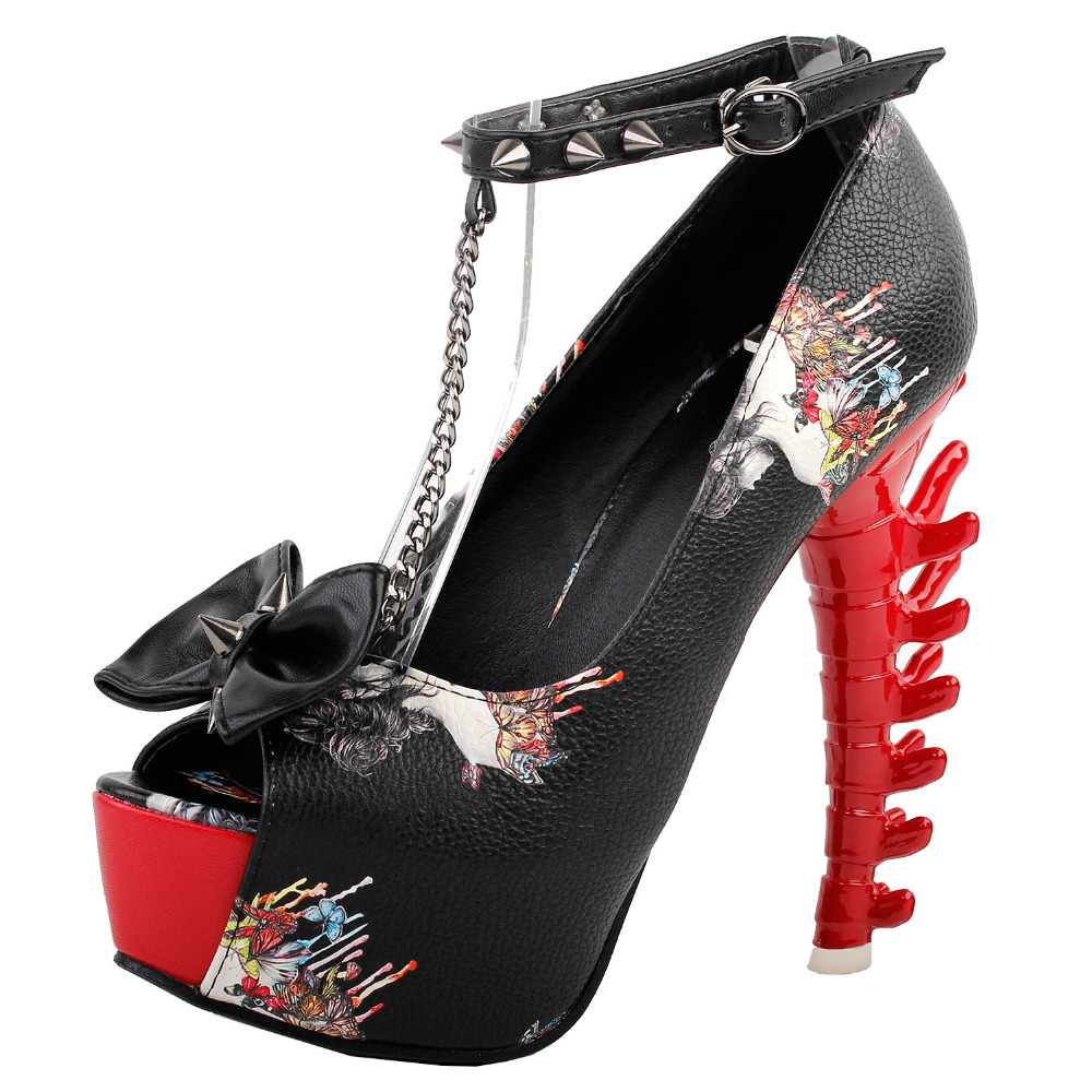 SKU: LF80631. Every girl needs that one pair of heels that will turn heads wherever you go and these are it! Wear them on a night out and you will have all eyes on you! Features gold studded spike and chain front, peep toe, and cushioned insole for walking comfort!