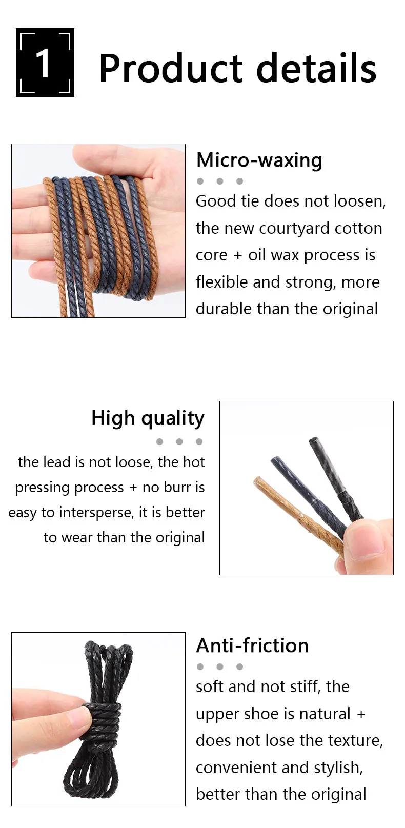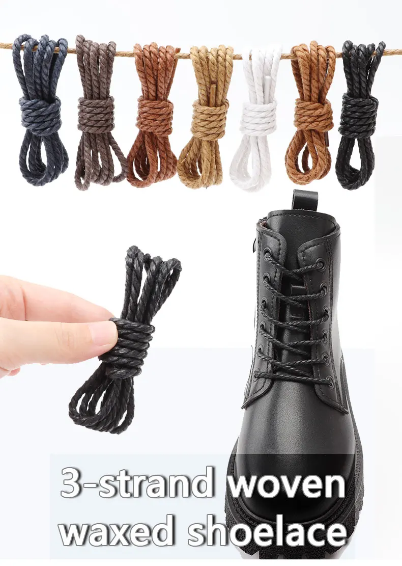 1 Pair Casual Leather Shoelaces Waxed Round shoe laces Shoestring Boots Sport Shoes Cord Ropes 60/90/120/150cm