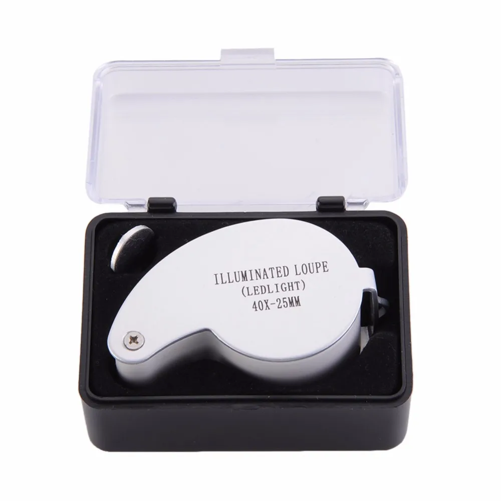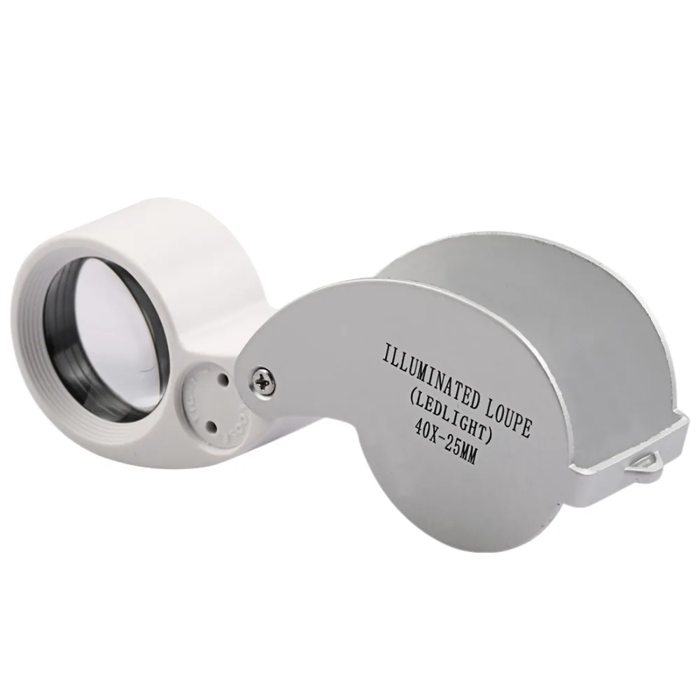 40X Mini Loupe Illuminated Magnifier Glass Eye Jewelers LED Lights Portable Folding Magnifying for Jewelry Coins Stamps Antique