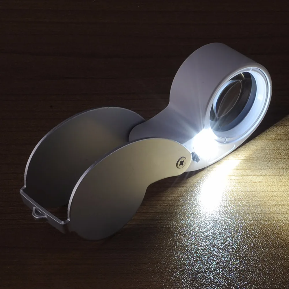 40X Mini Loupe Illuminated Magnifier Glass Eye Jewelers LED Lights Portable Folding Magnifying for  Jewelry Coins Stamps Antique