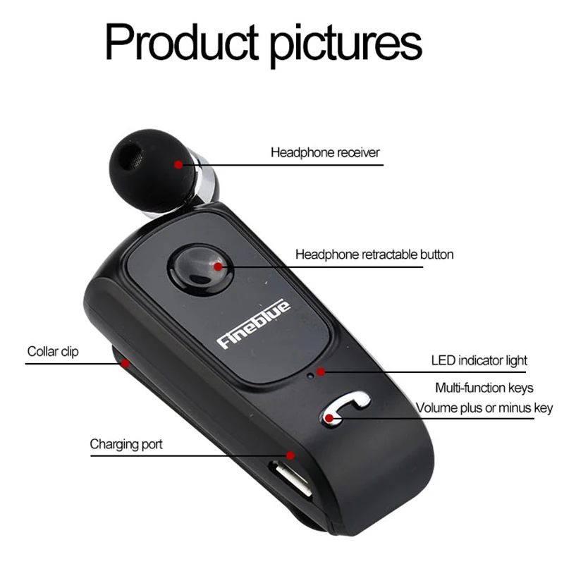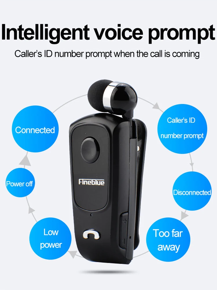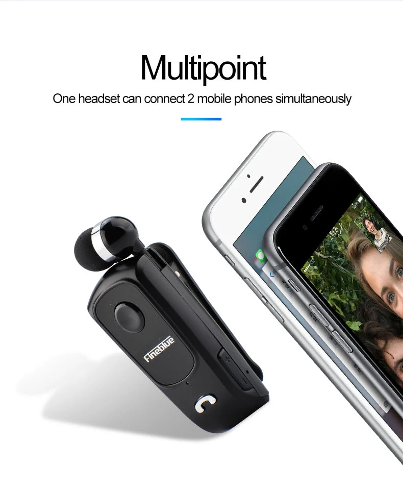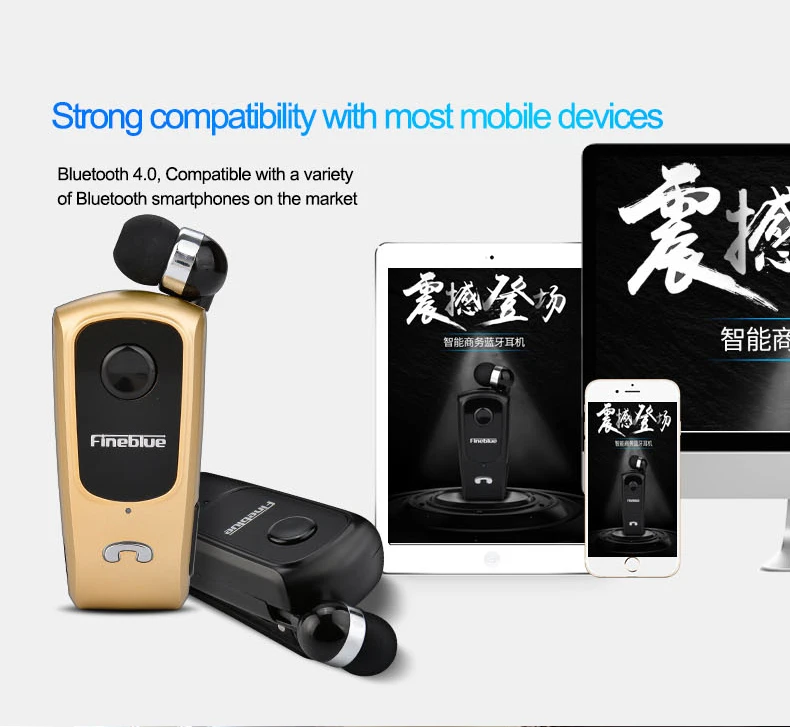 5.0 Fineblue F920 Wireless Retractable Portable Mini Bluetooth Headset Calls Remind Vibration Wear Clip Sports Running Earphone