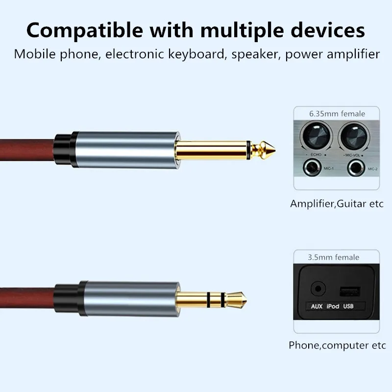 Audio Cable 1/4''Jack 6.35mm Male To 3.5mm Jack Plug Male Pure Copper Wire For Amplifier Guitar Mixer Speaker 1m 2m 3m 5m 10m