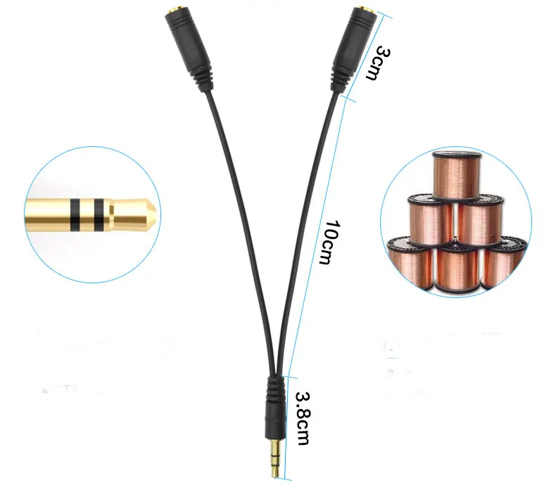 1.Black color, 20cm (8inch). 2.Share your music with this earphone/headphone cable splitter 3.It is most suitable for lovers 4.Allows you to connect two sets of earphones, headphones or stereo speakers to your MP3 or media player. 5.Suitable for Apple iPod, iPhone, Mp3, Mp4, Sony PSP and any music and media player or gaming device with a 3.5mm earphone / headphone jack