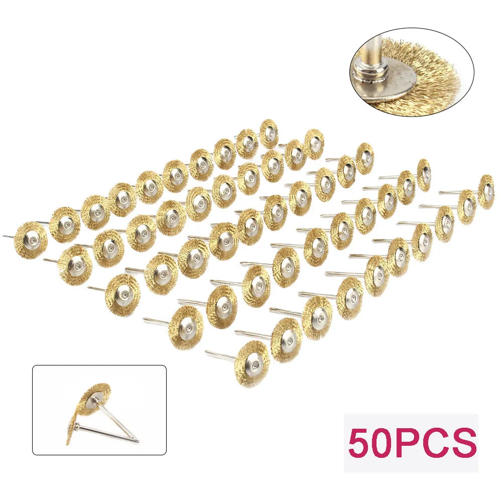 30/50PCS Crimped Brass Wire Wheel Brushes Wire Brushes Set For Accessories Rotary Tools Polish Clean For Dremel Rotary Grinder