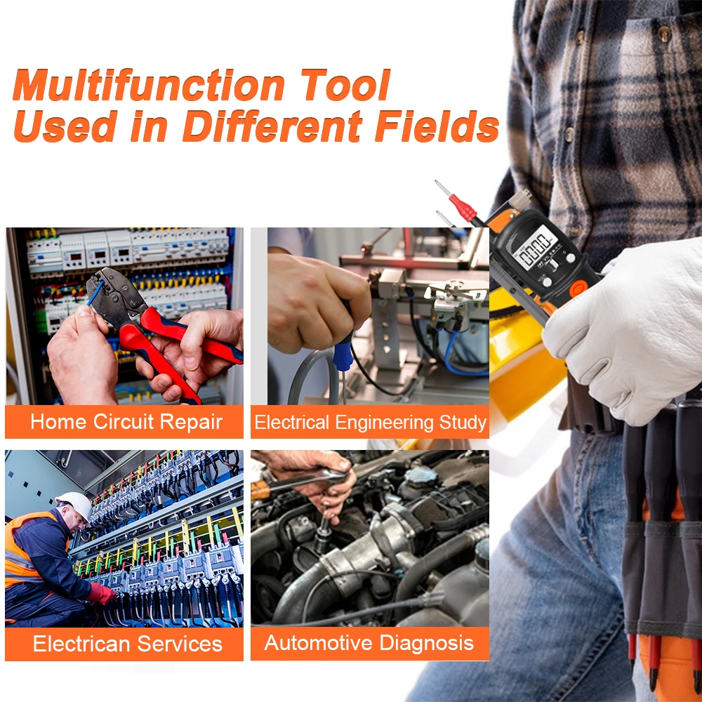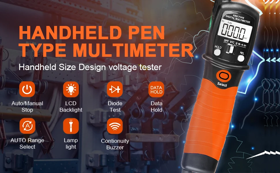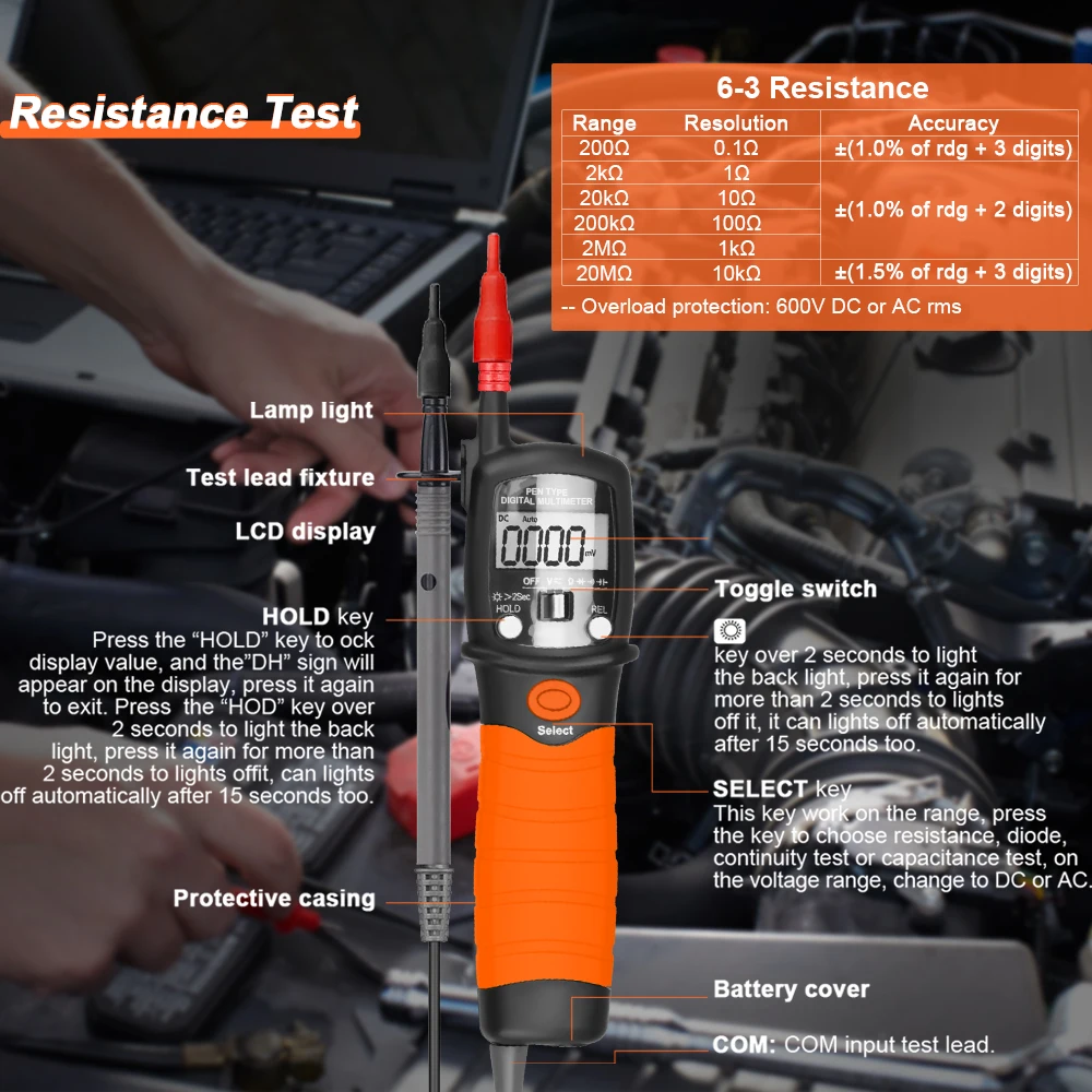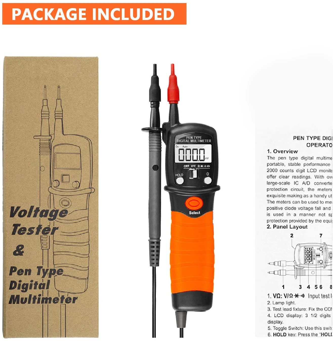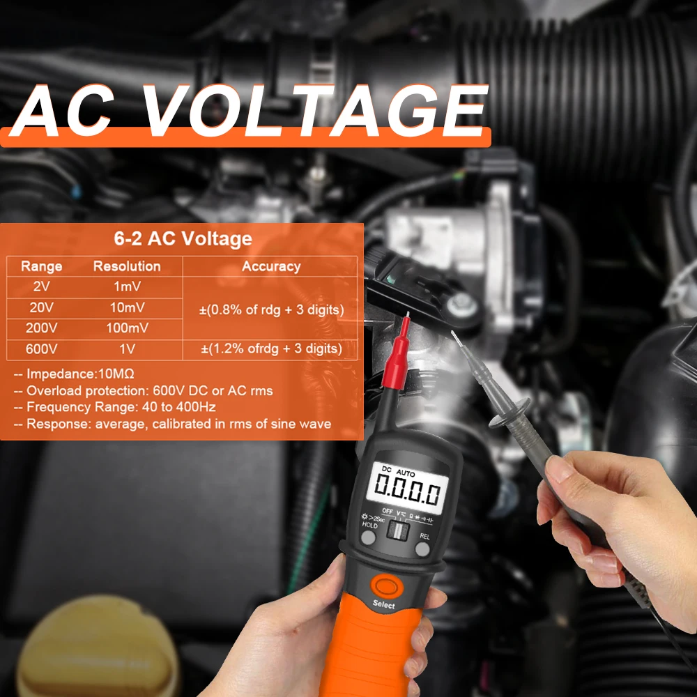 Voltage Tester accurately measures AC Voltage:2V~600V/DC Voltage:200mV~600V, Resistance Tester from 200Ω ~ 60MΩ,Diode test and Continuity Buzzer.