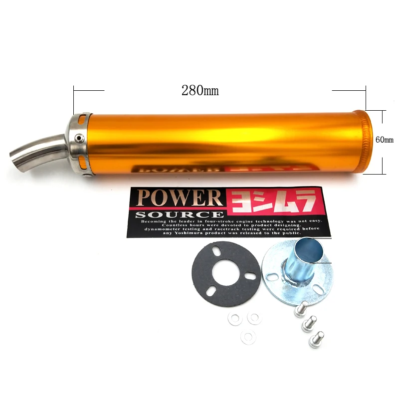 2 Stroke Motorcycle Exhaust Pipe MufflerPlace of production:ChinaFit for:UniversalCondition: 100% brand newMaterial Type: metalColor: Red/Black/Silver/BlueMeasurement: 60mmx280mm (marked on the image).
