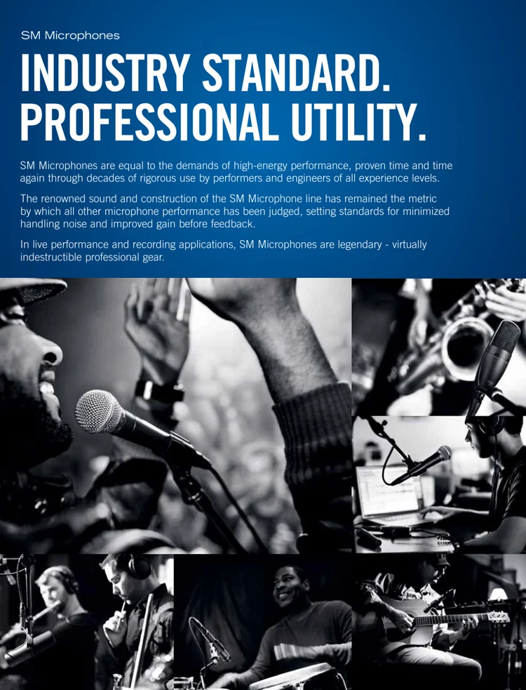 You've seen this mic before, haven't you? That's because Microphone is everywhere — on stages worldwide, on TV, in studios, and on podiums. So, do you have one? If not, you need one! You'll love how the Microphone sounds on live vocals, and its legendary reputation for reliability is well earned. Put this mic on vocals onstage or in the studio, and you'll be an instant believer. You can even use it on instruments, thanks to its tight cardioid pickup pattern and wide frequency range. Best of all, you're going to love the price. You won't find a better mic — or a better deal!
