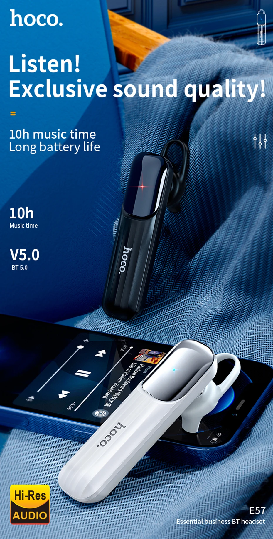 Hoco V5.0 Business Bluetooth Headset Wireless Car Handsfree Headphones with Mic Hi-Res Audio Earphone For iPhone Xiaomi Samsung