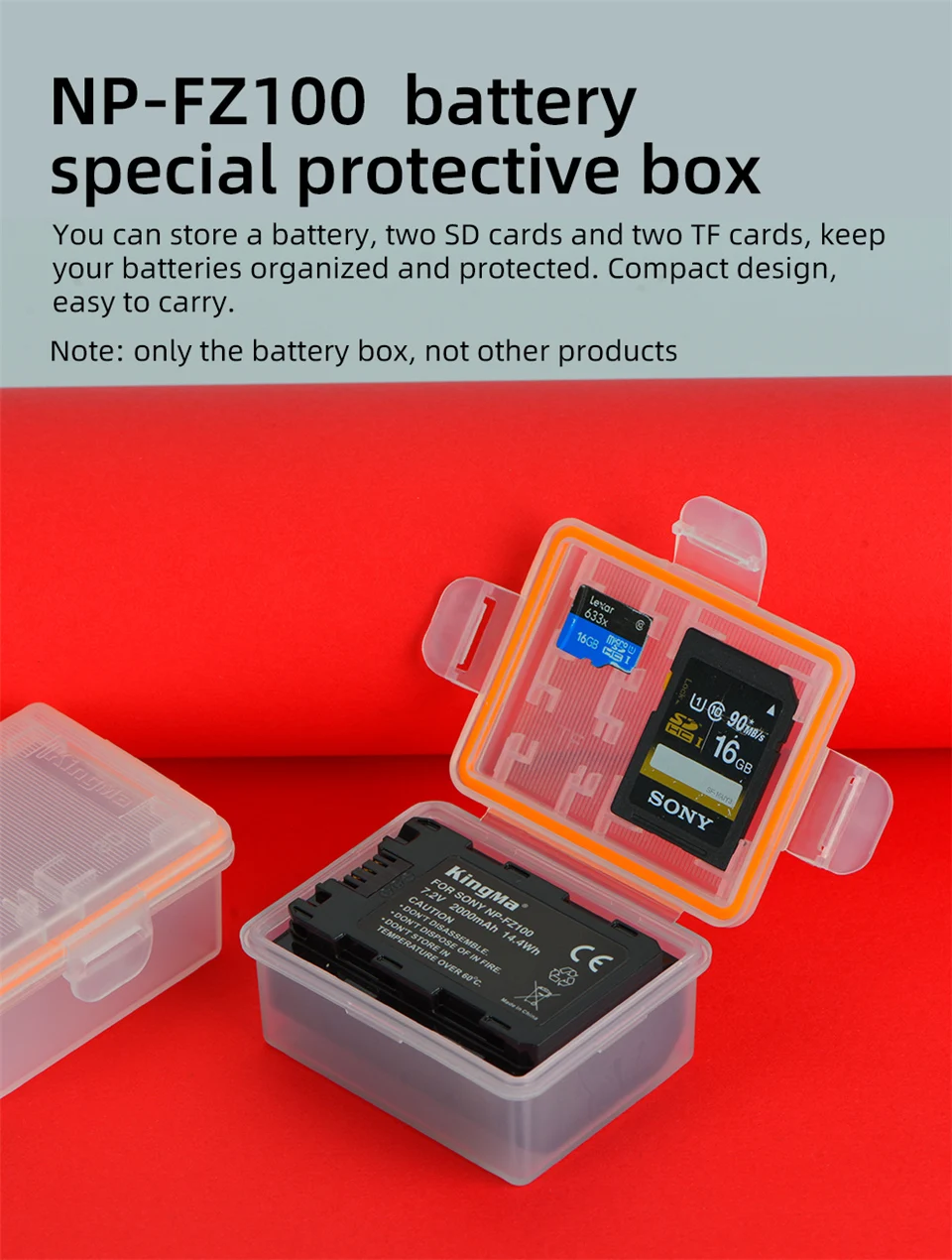 KingMa NPFZ100 Battery Plastic Holder Case Battery Storage Box For Sony NP-FZ100 Battery ILCE-9 A7R4 A7M4 A7RM4 A7M3 A9 A73 7RM3 A7R3 A6600