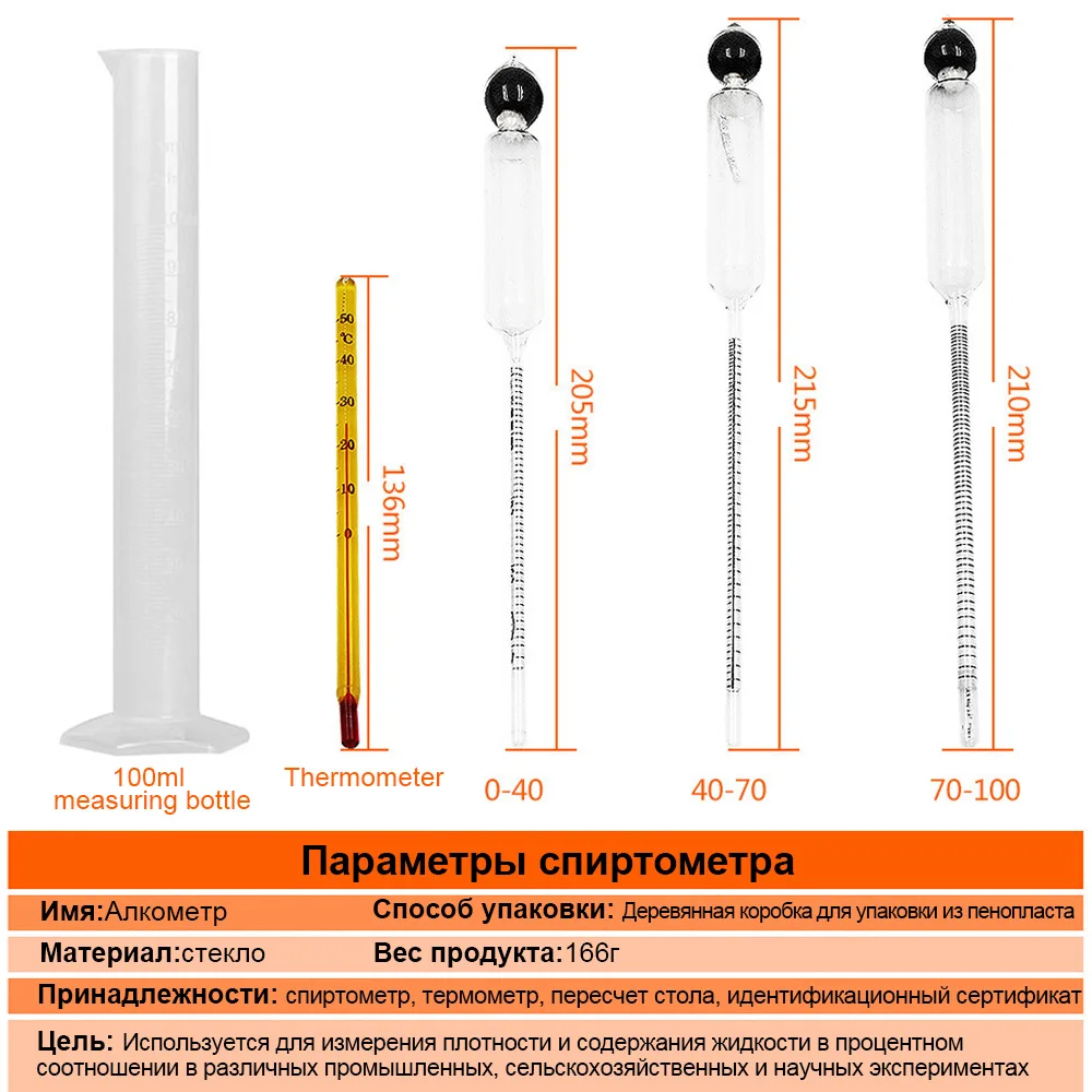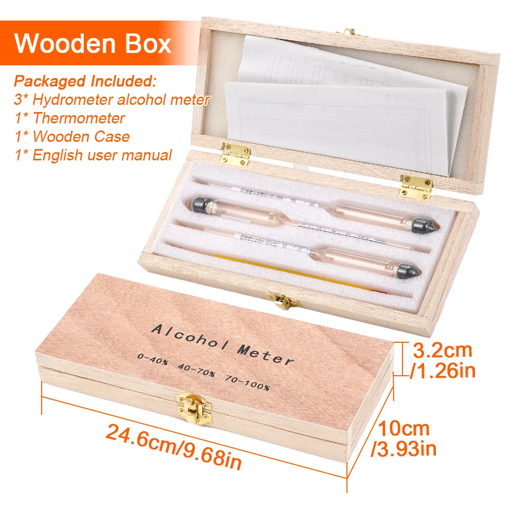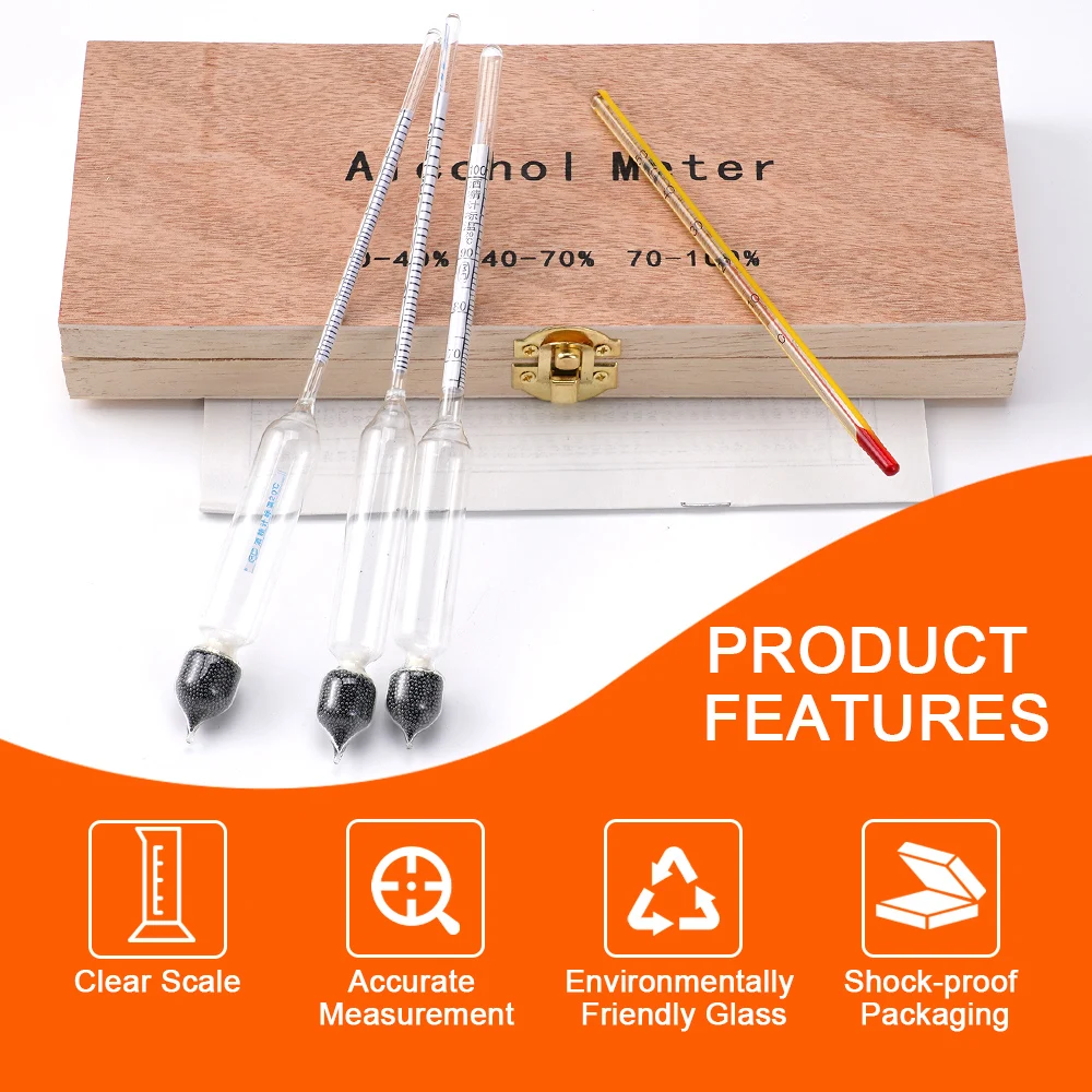 Hydrometer Testeing Bar Set Professional Alcohol Hydrometer Meter Tester for Wine Vodka Whiskey