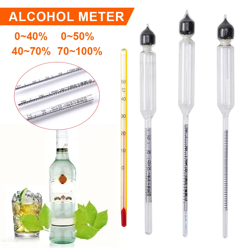 4 PCS Alcohol Concentration Meter Measuring Tool Tester With Thermometer Wine Vodka Whiskey