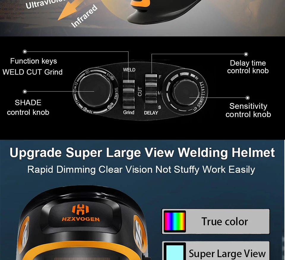 3). It works the moment you start work, this products adopts advanced circuit design striking the arc, the observing window darkens immediately