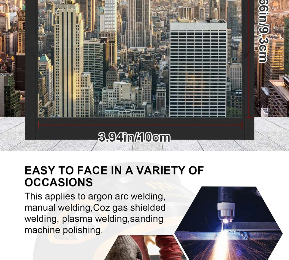 2). High definition protective filter, you can see the welding conditions clearly when welding the goods. Welding luminosity is soft and comfortable