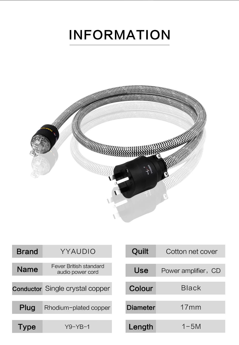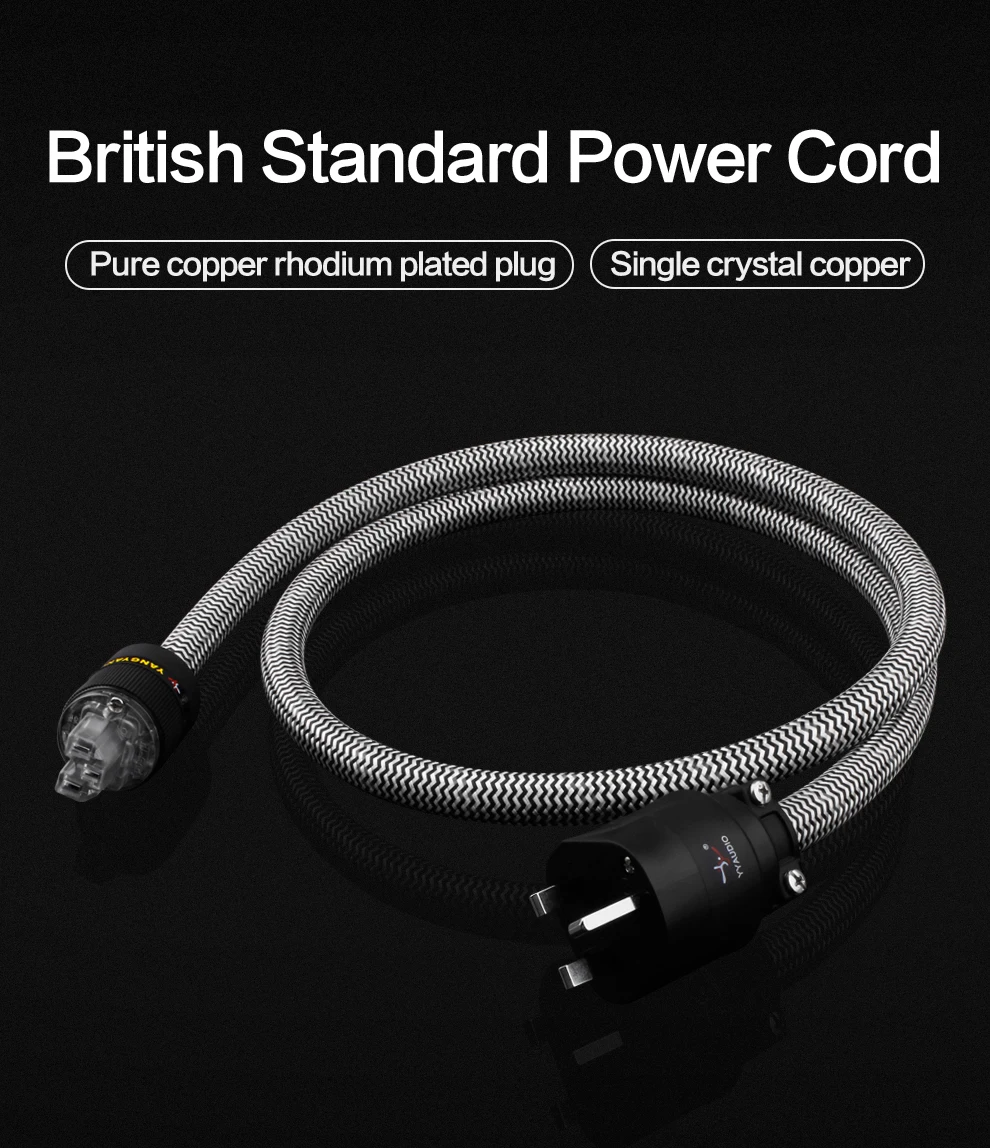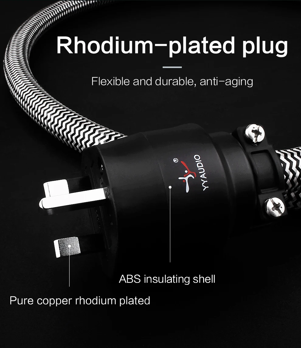YYAUDIO HIFI amplifier OFC Pure Copper Rhodium Plated UK IEC AC Female Male Power Plug Power Cable Cord Wire