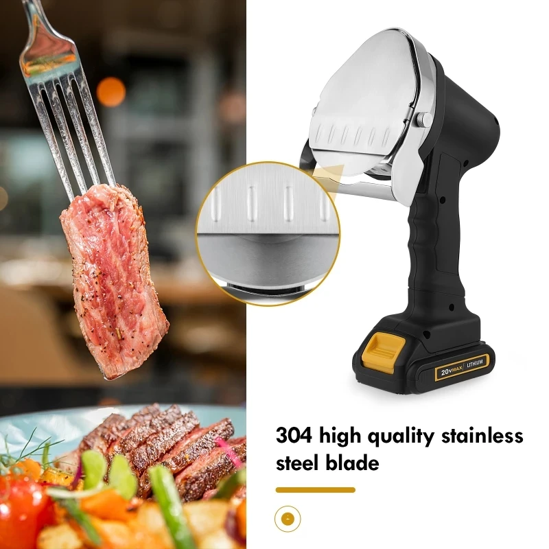 3. Wireless operation: This barbecue knife adopts 20V rechargeable lithium battery, which eliminates the inconvenience of the power cord and makes the meat cutting work more convenient. You can carry the meat cutting knife wherever you want to go.