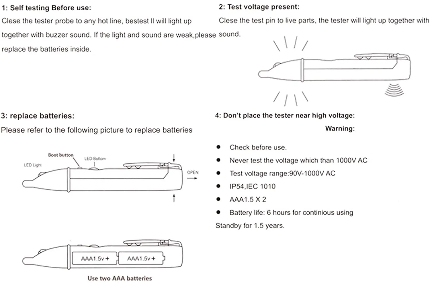 Electric indicator 90-1000V Non-Contact Socket Wall AC Power Outlet Voltage Detector Sensor Tester Pen LED light AC 110V-220V