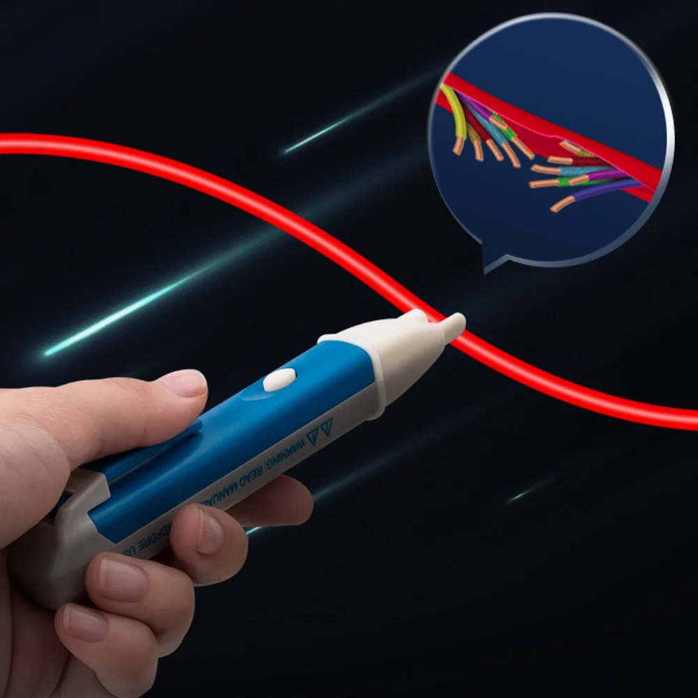 The next generation AC non-contact voltage testers are easy to use — just touch the tip to a terminal strip, outlet, or supply cord. When the tip glows red and the unit beeps, you know there is voltage present. Electricians, maintenance, service, safety personnel, and homeowners can quickly test for energized circuits in the workplace or at home.