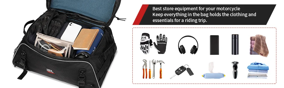 【A large storage capacity】- that can handle everything from helmets to weeks' worth of clothing.