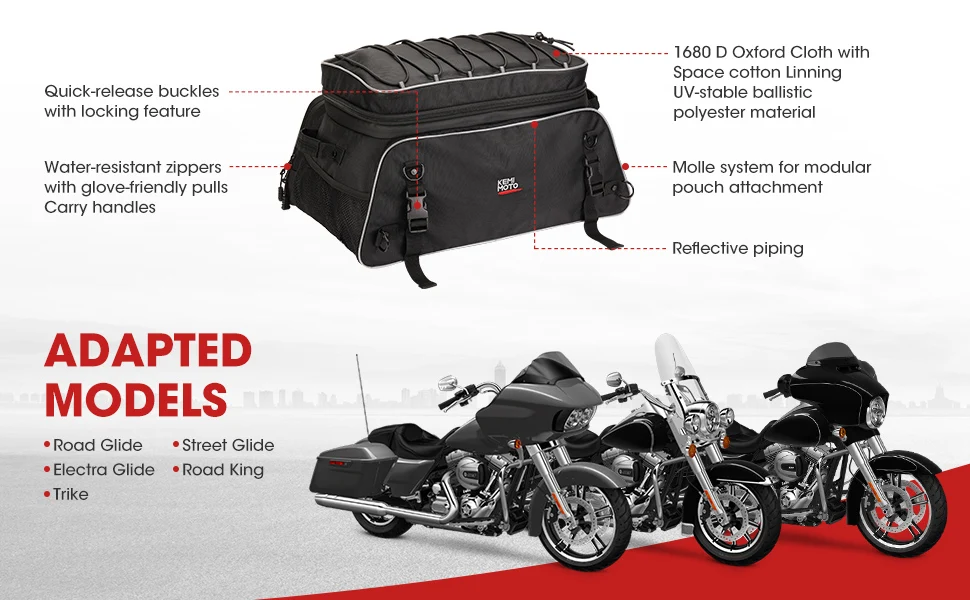 Motorcycle Travel Luggage Tour-Pack Rack Bag Collapsible Trunk Bags with Bar Straps for Road King Street Glide for Road Glide