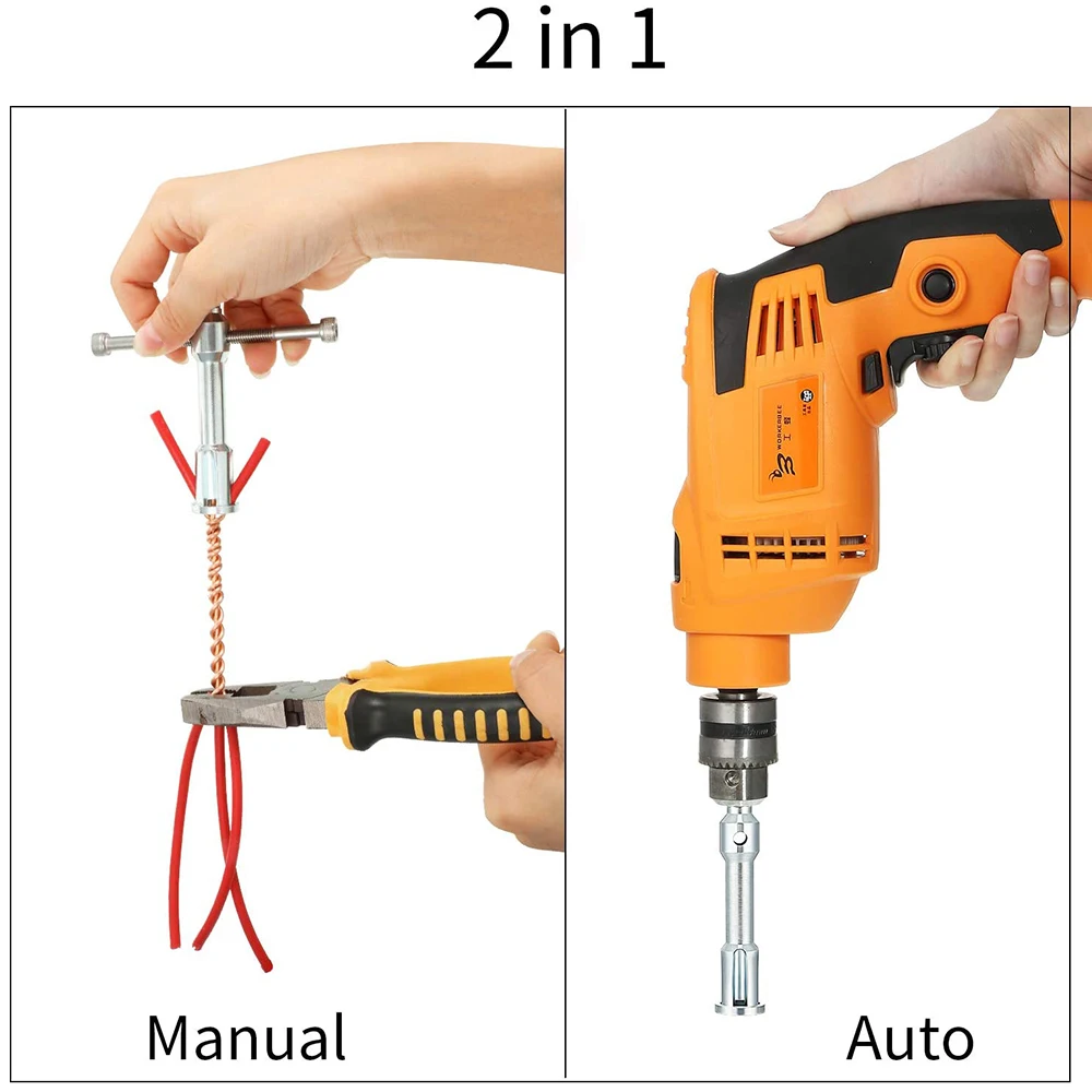 4. There are two types of stranding tools, B type with two screws can be used to twist the wire manually, and can also be used with an electric drill;A type can only achieve the function of stripping and stranding with an electric drill.