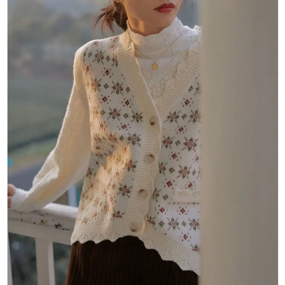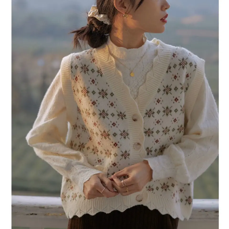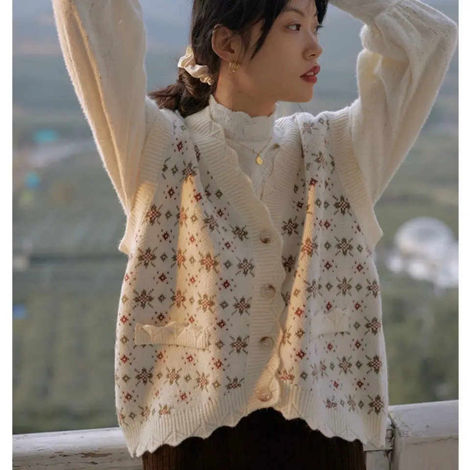 Sweater Vest Women V-neck Patchwork Single Breasted Streetwear Retro All-match Outwear Ins Korean Style Leisure Sleeveless Chic