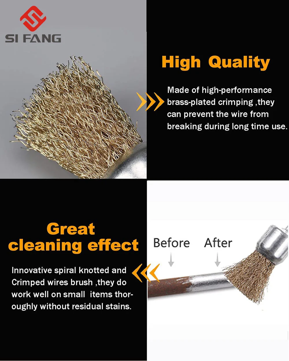 Use brass coated carbon steel crimped wire, compared with ordinary wire brushes, it has higher elasticity and high temperature resistance, the wire will not be lost and bent during the intense use.