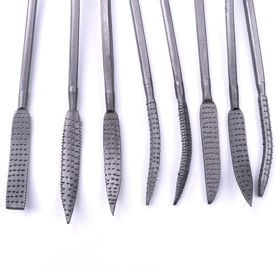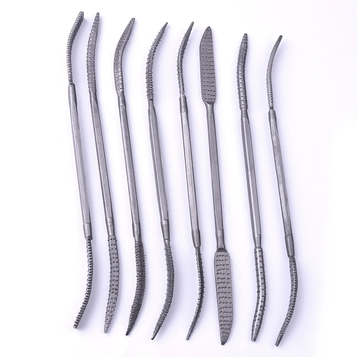 8pcs/sets Mini Wood Working Rasp Riffler File Set Double Ended Coarse Hand Tool 190mm Rasper For Wood Carving